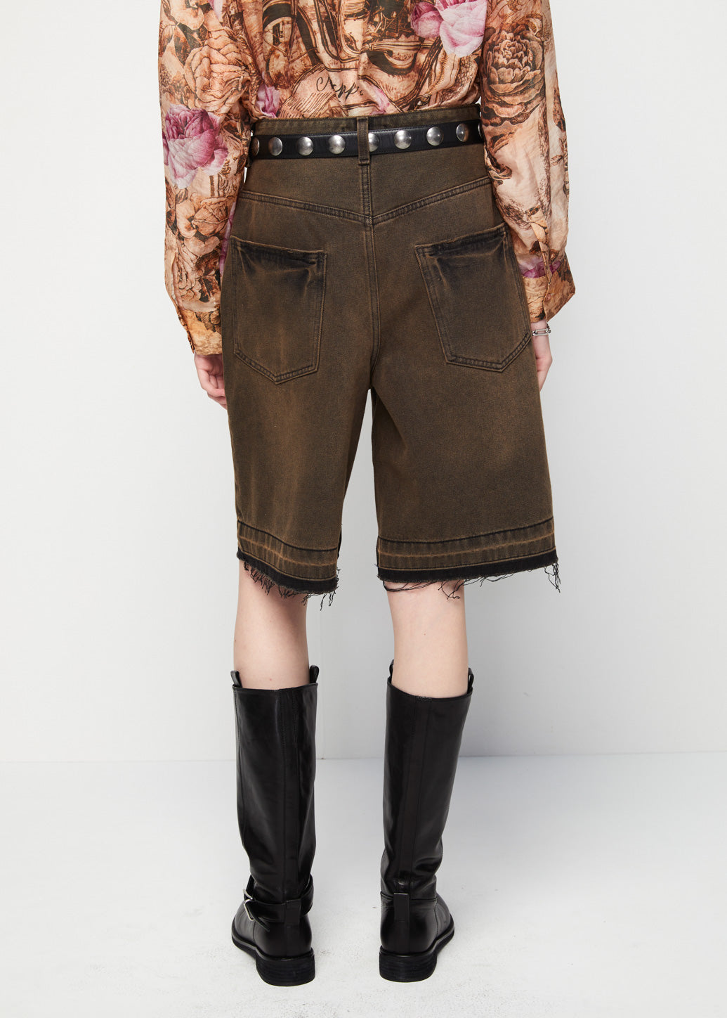 Denim shorts highlighted with distressed front details that add a vintage grunge edge. Designed with 5 functional pockets for everyday use, they’re comfortable and versatile. Pair with a graphic tee or crop top—perfect for achieving an effortlessly wearable vintage street look.
