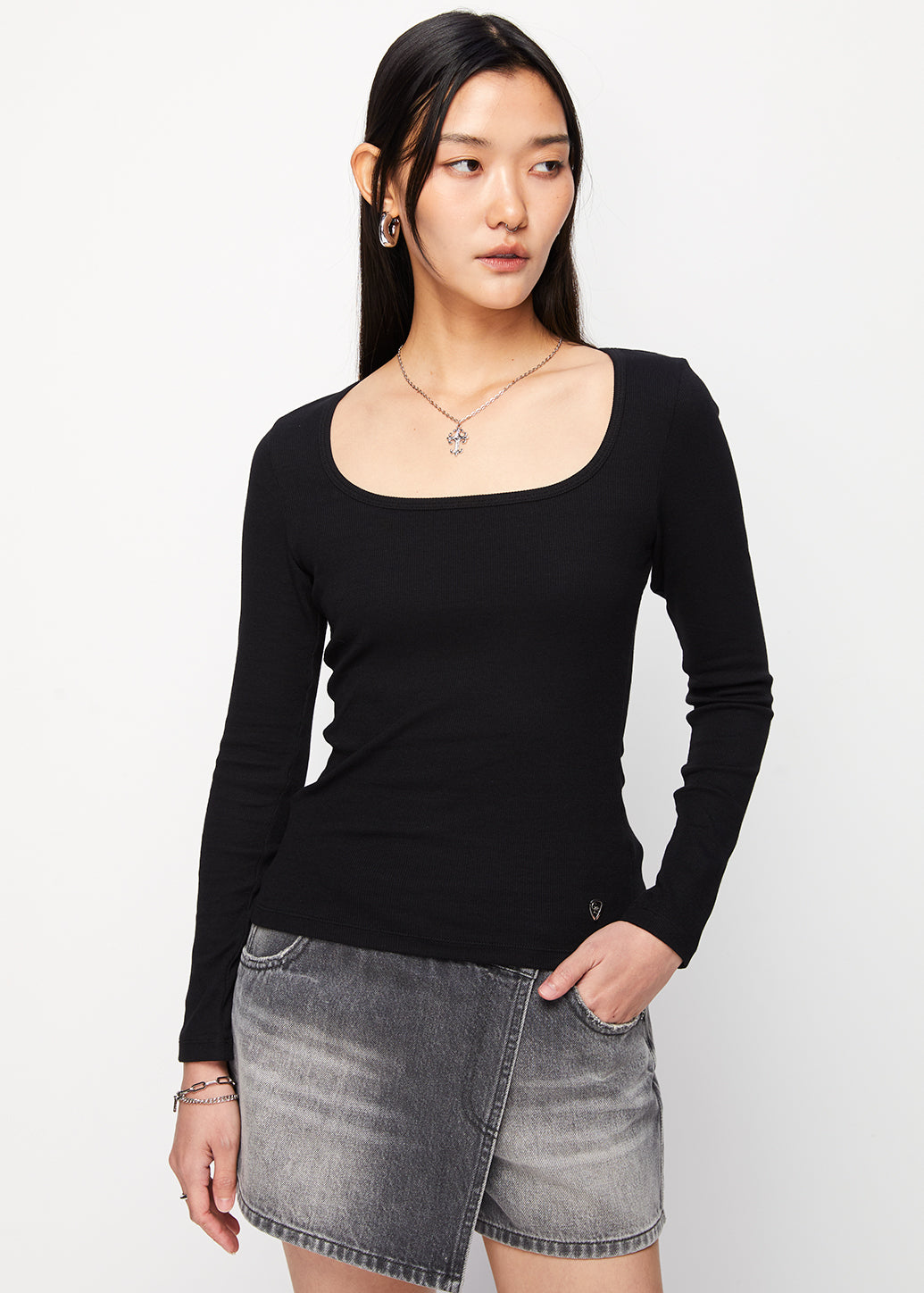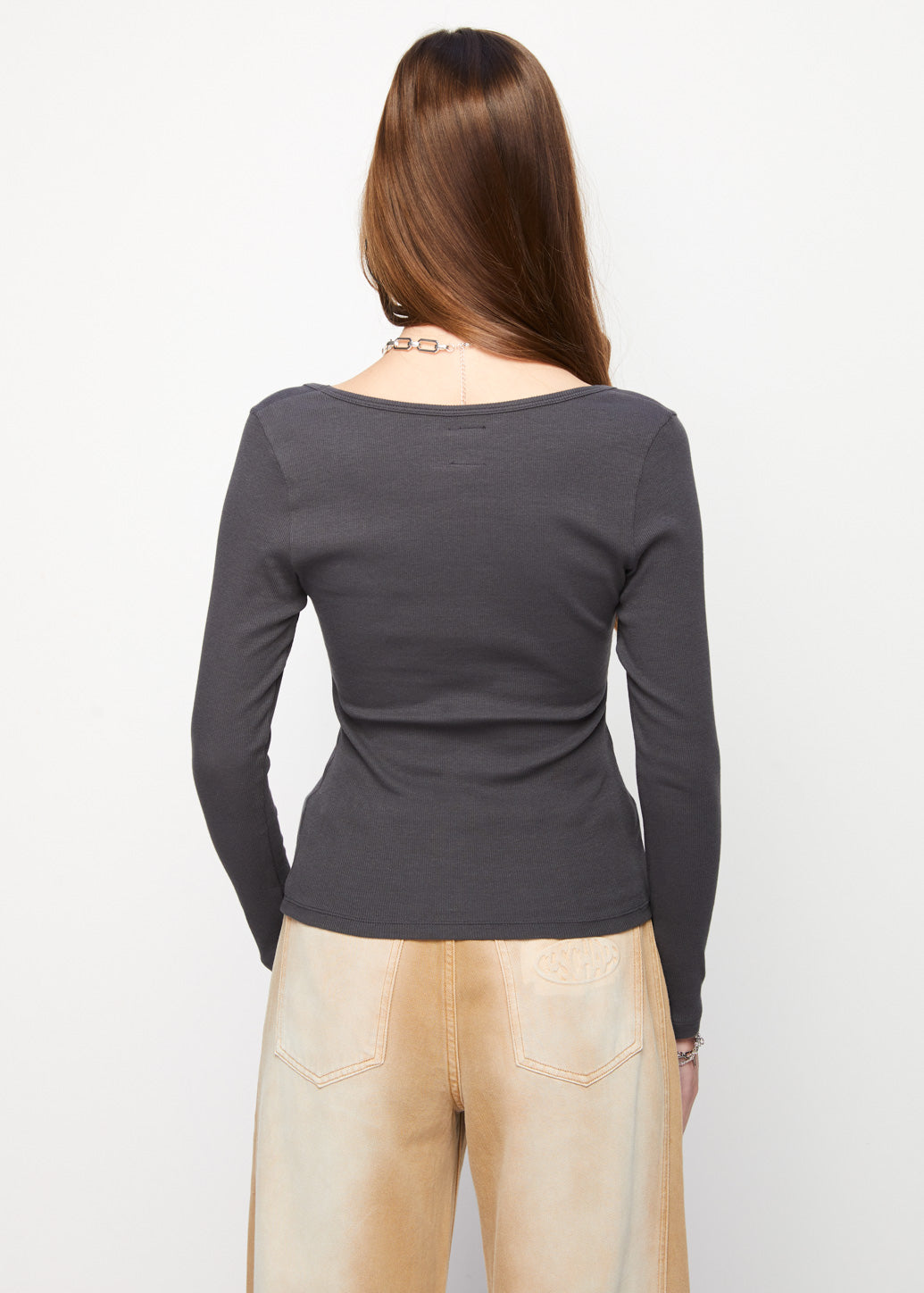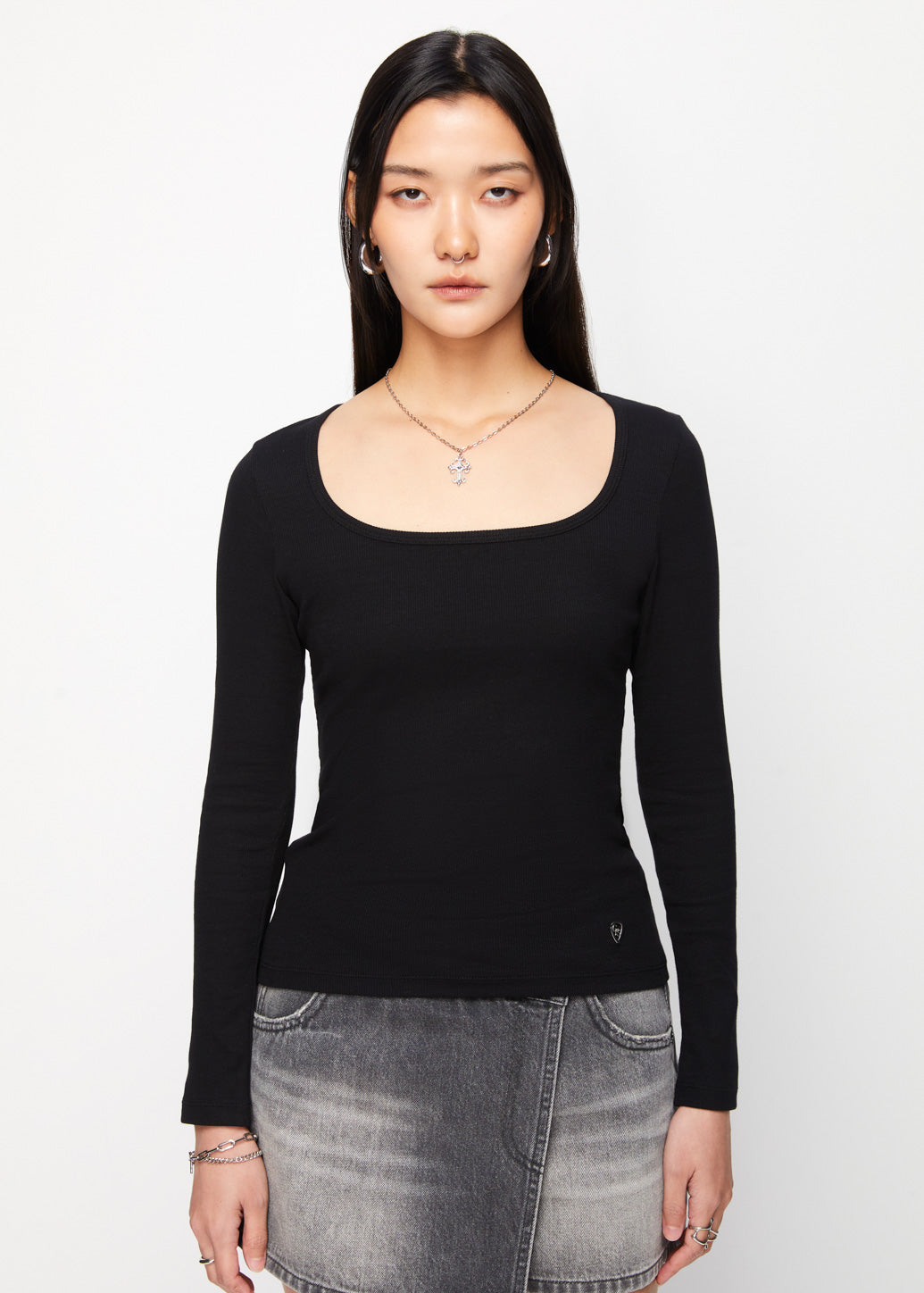 Long-sleeve square-neck top, a signature piece from CPS CHAPS. Designed with a wide square neckline and finished with a metal guitar pick fret charm detail at the hem, adding a bold accent that makes your look stand out with individuality.