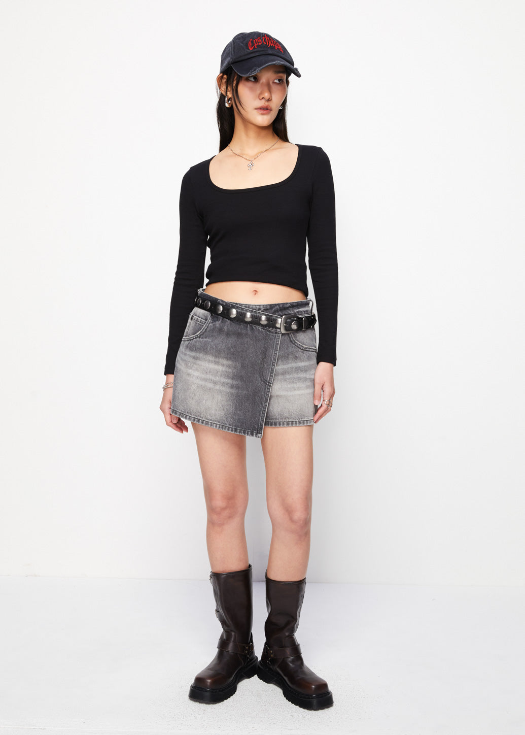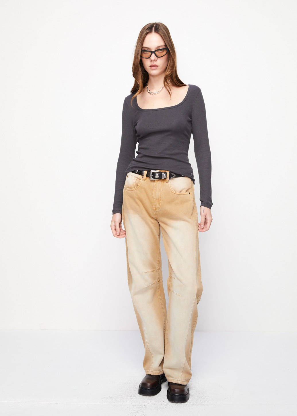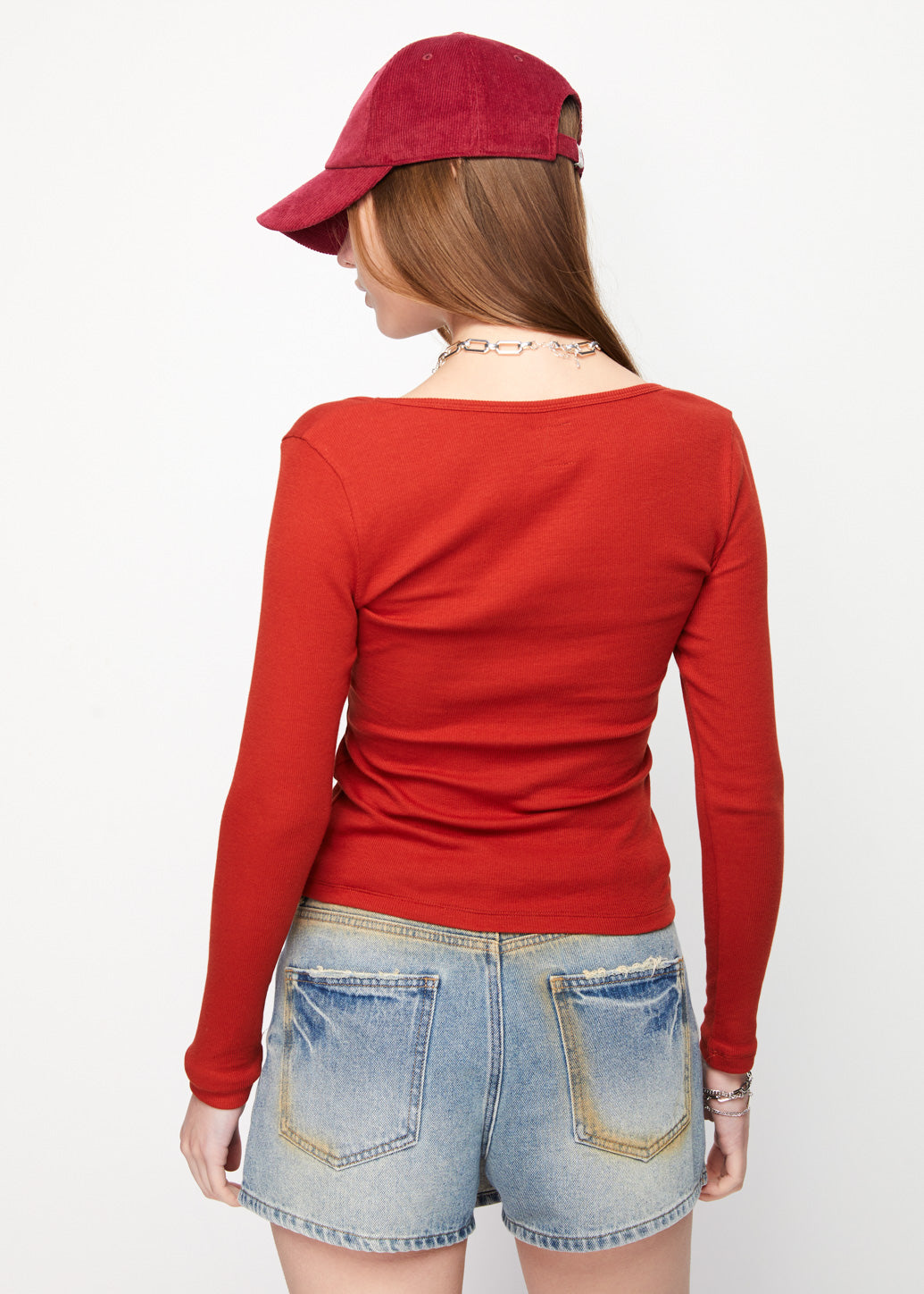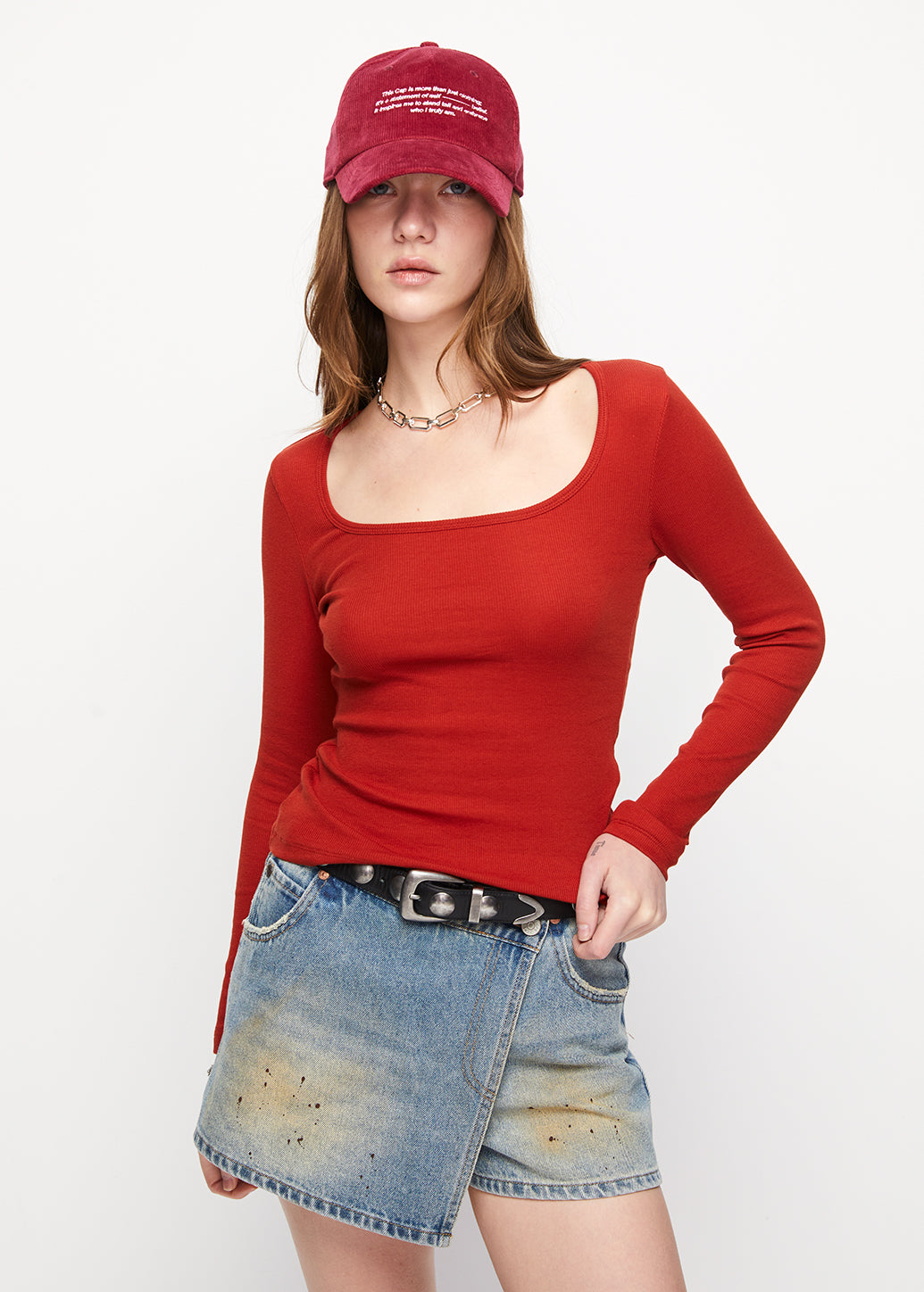 Long-sleeve square-neck top, a signature piece from CPS CHAPS. Designed with a wide square neckline and finished with a metal guitar pick fret charm detail at the hem, adding a bold accent that makes your look stand out with individuality.