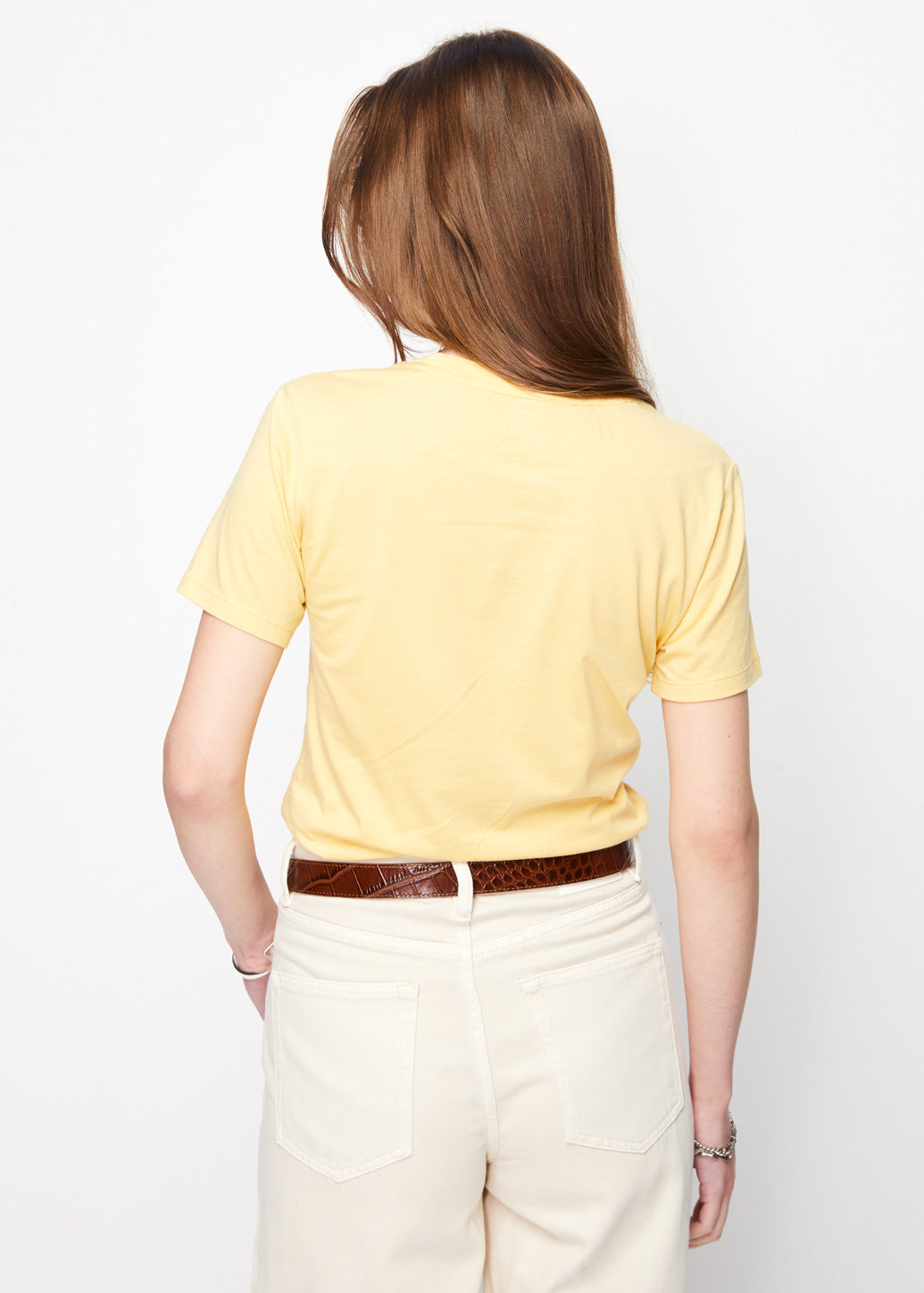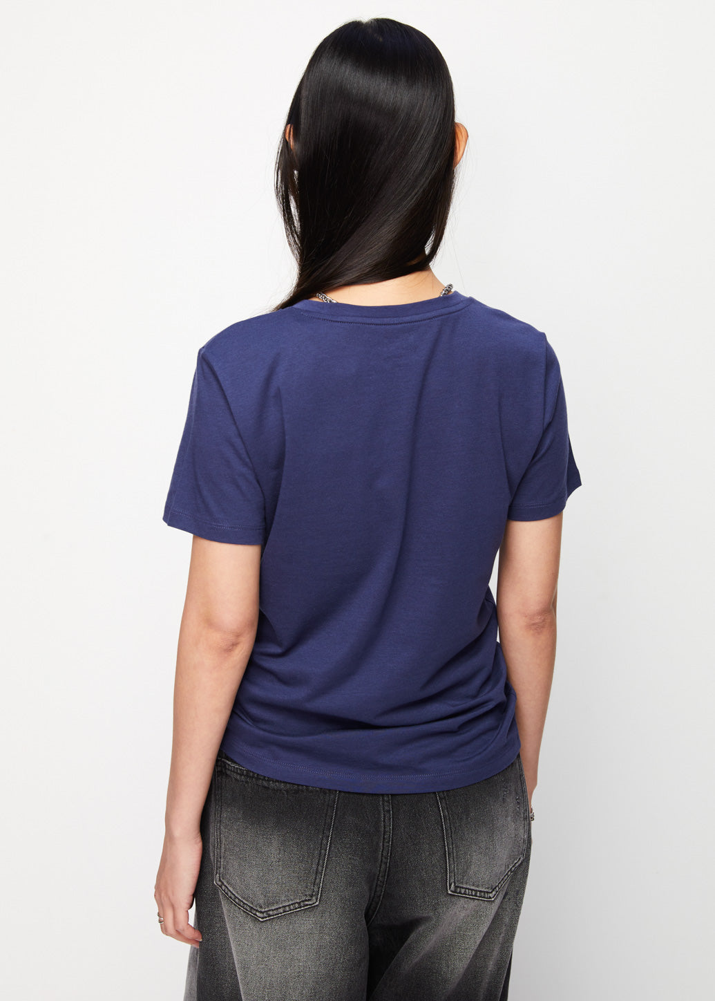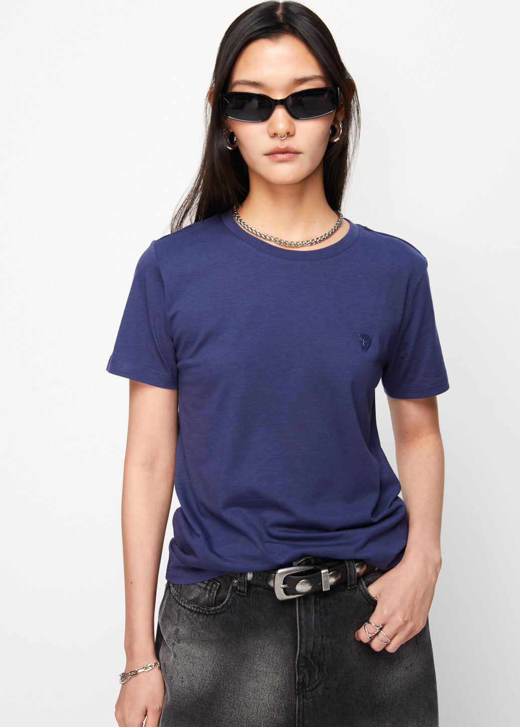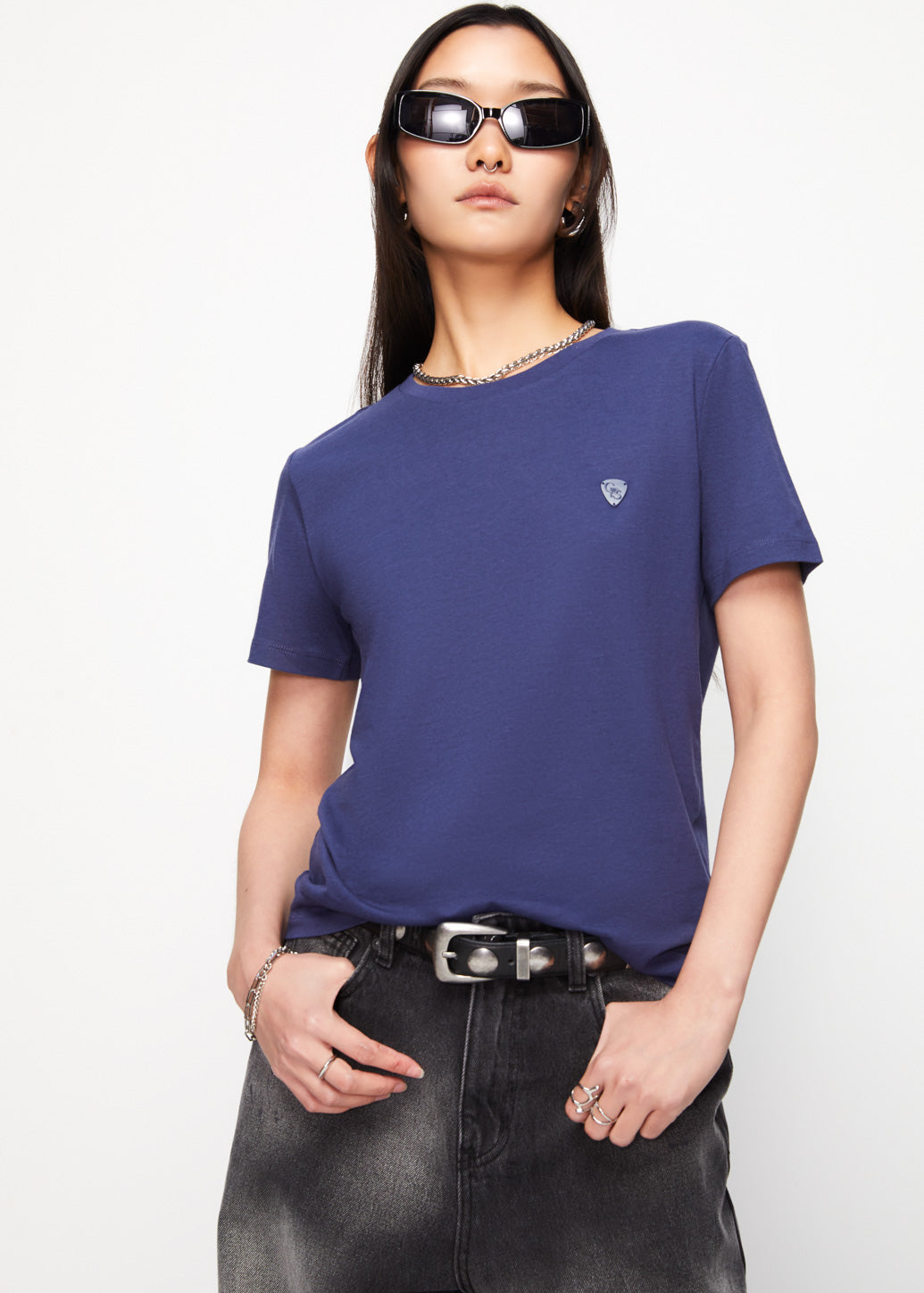 A short-sleeve, crewneck T-shirt featuring a signature metal guitar pick detail on the chest exudes a distinct touch from CPS CHAPS. Made from soft organic cotton for all-day comfort, combining effortless style with eco-conscious design.