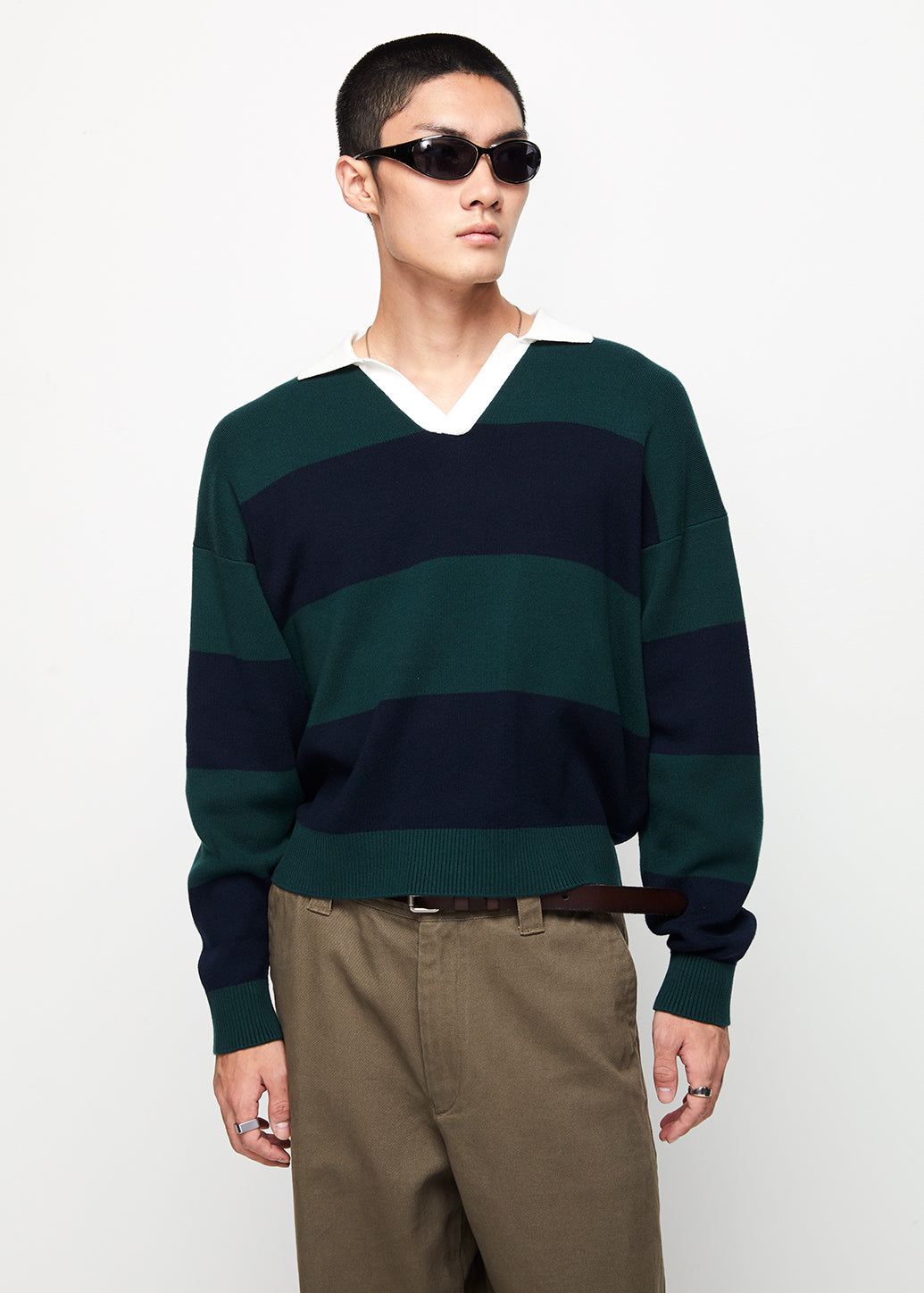 Achieve a classic Ivy League look with our long-sleeve rugby shirt. It stands out with a bold stripe design, a boxy fit, and an open neckline. Made from a soft, breathable, lightweight knit, it’s perfect for layering with a sweater to create a modern vintage preppy look.