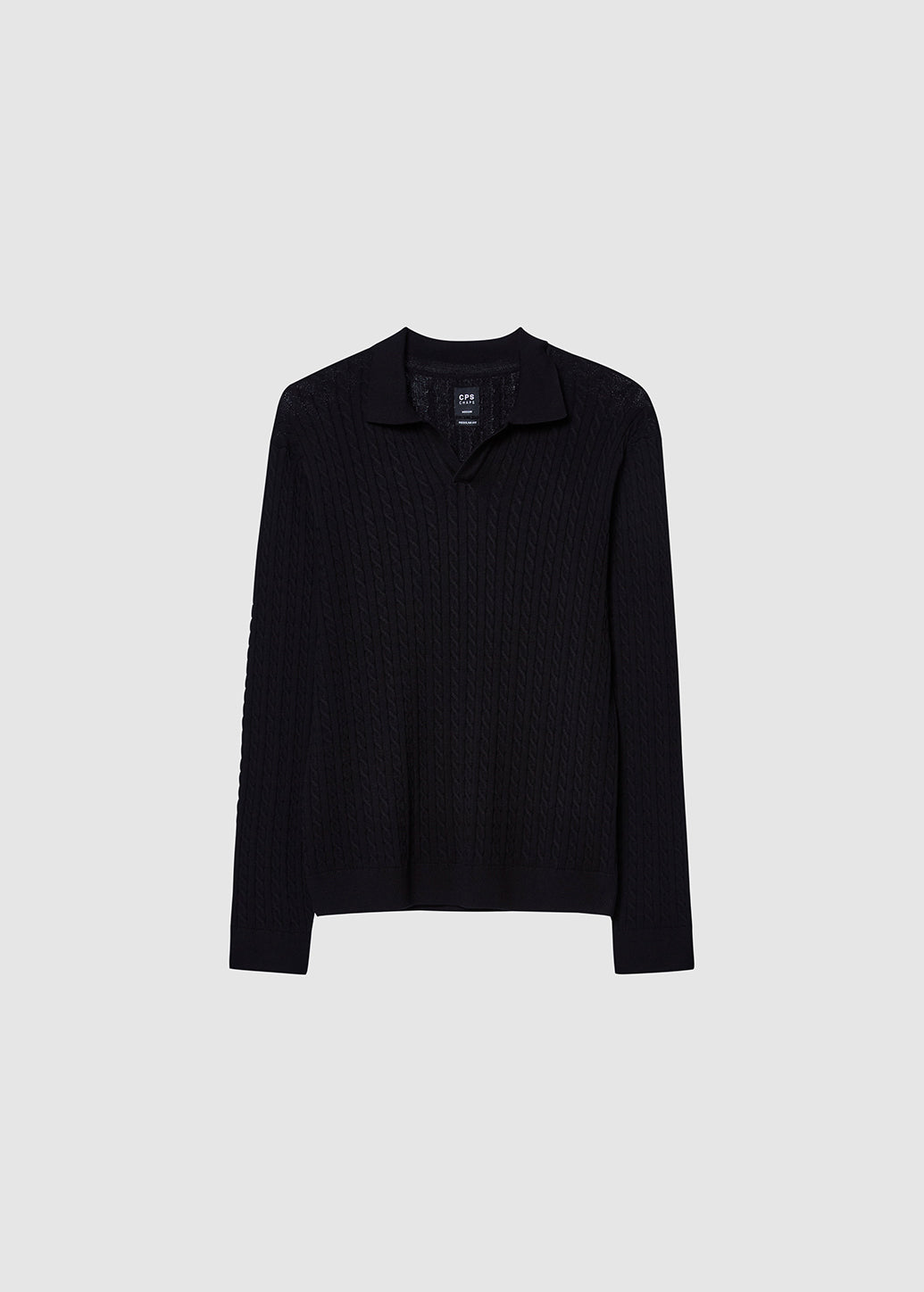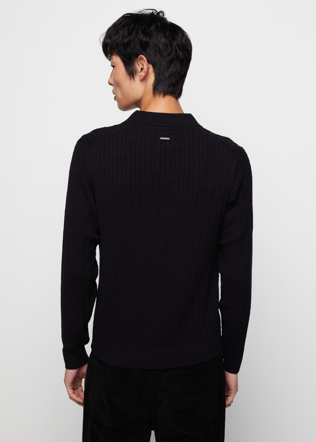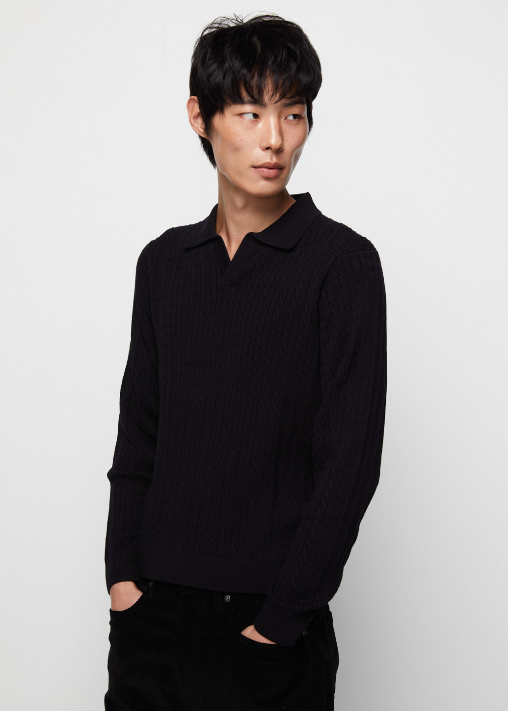 Regular-fit long-sleeve polo shirt with a timeless textured design, featuring an open polo collar and ribbed details at the collar, cuffs, and hem for a sporty touch. It brings a cool, comfortable, and versatile style that works for any occasion.
