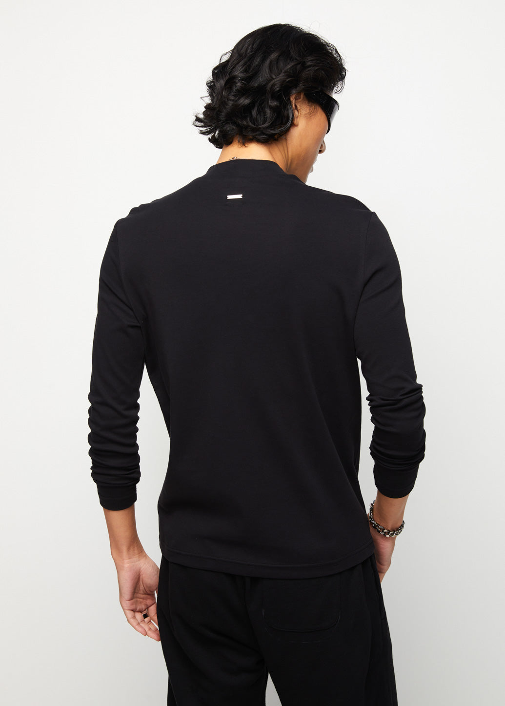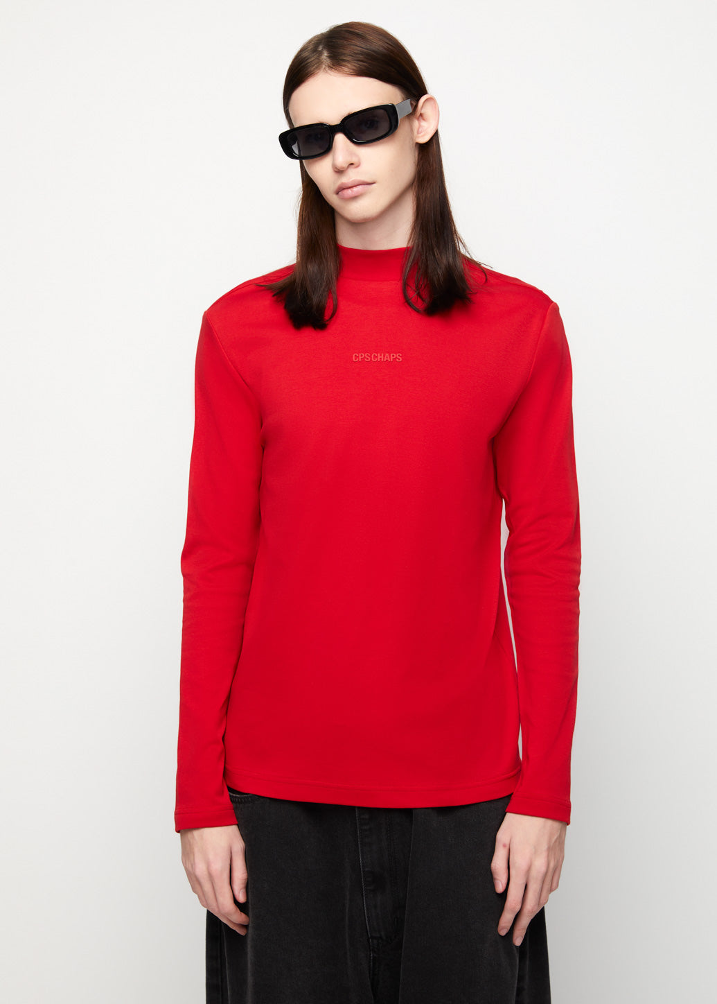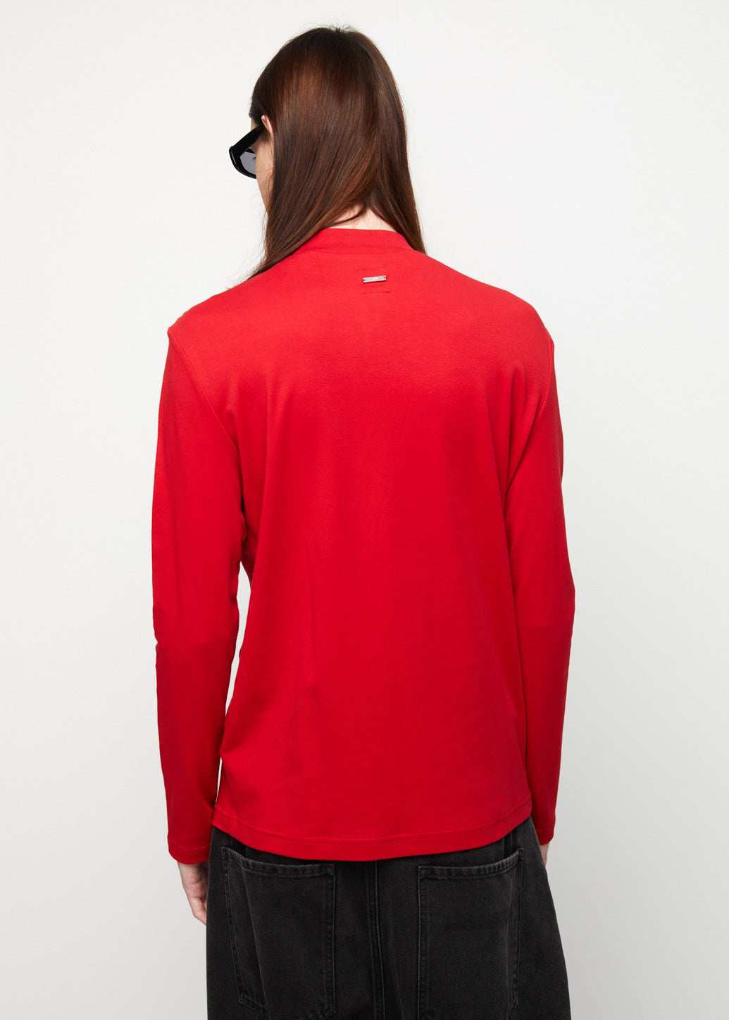 Minimal long-sleeve top highlighted by a raised rubber print of the brand concept slogan, “CREATIVITY. PASSION. SELF.” on the front. This signature detail adds character, perfect for classic and casual looks with an edgy touch.