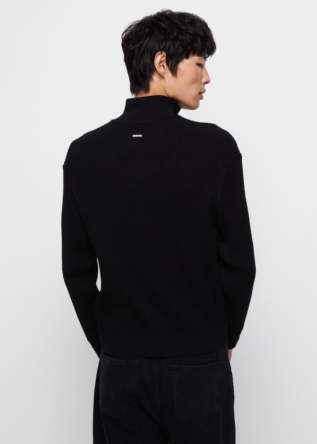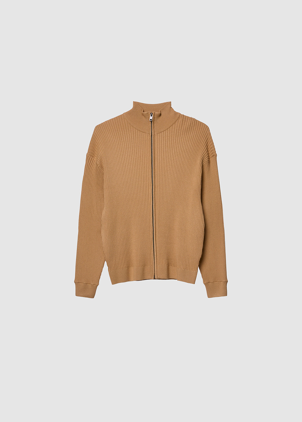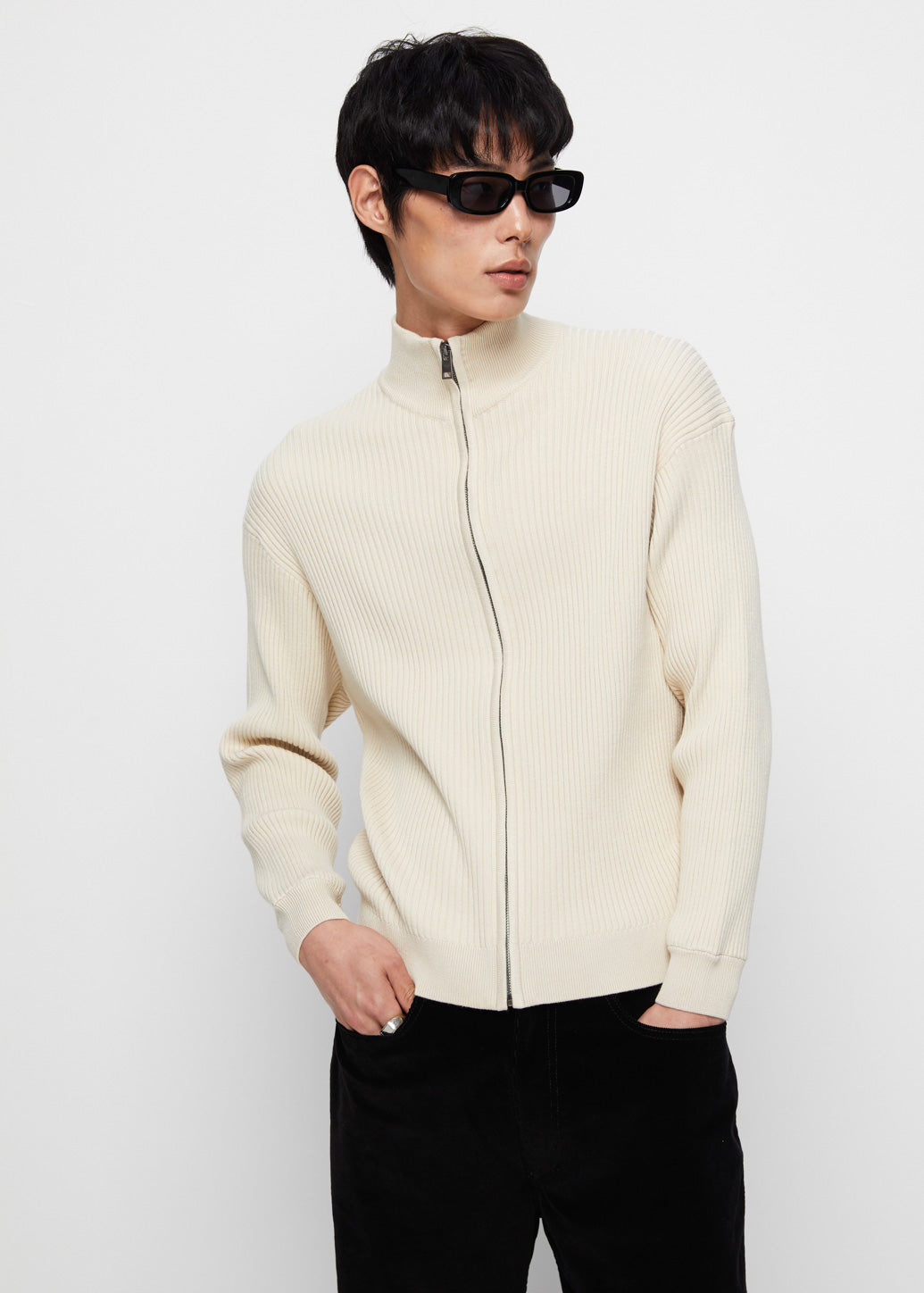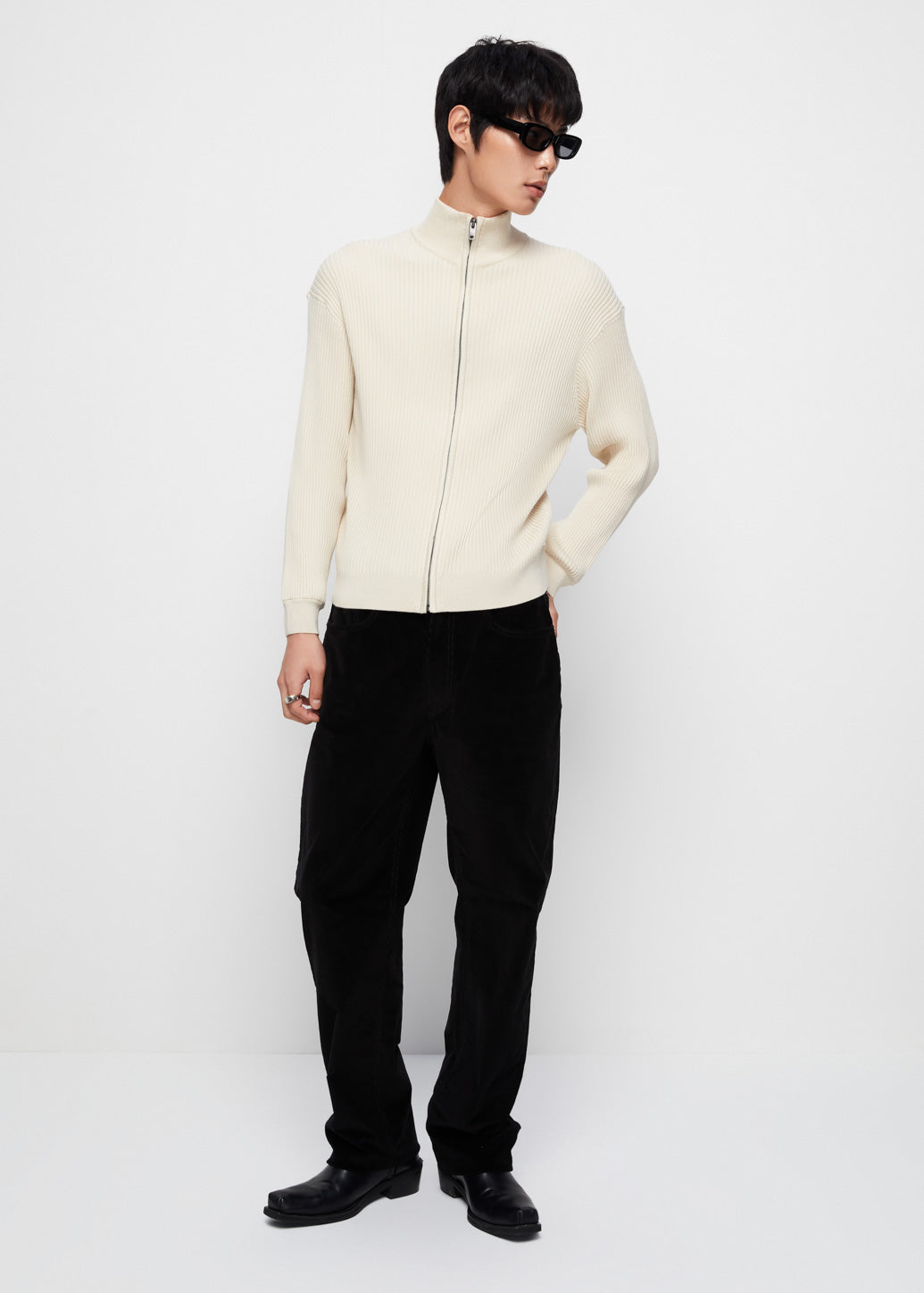 Here is the best effortless cool with this patterned knit sweater. A unique collared and two-way zipper on the front elevates the loose sweater design. It comes in three versatile colors, making it a must-have piece for creating a chic, minimal winter outfit.