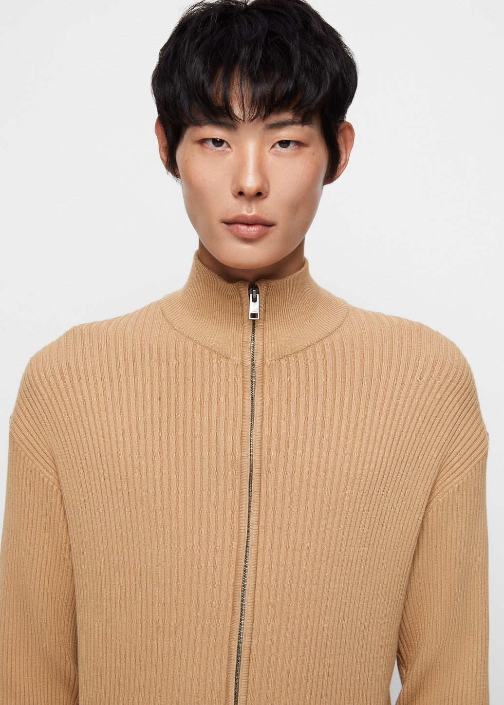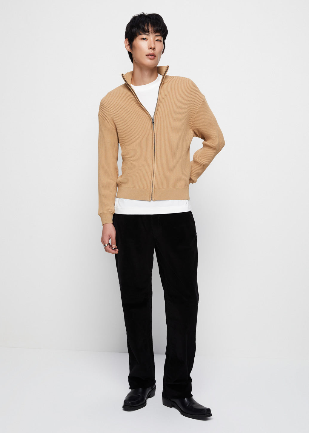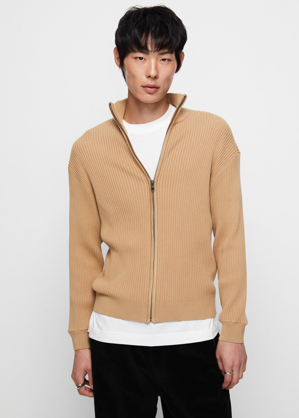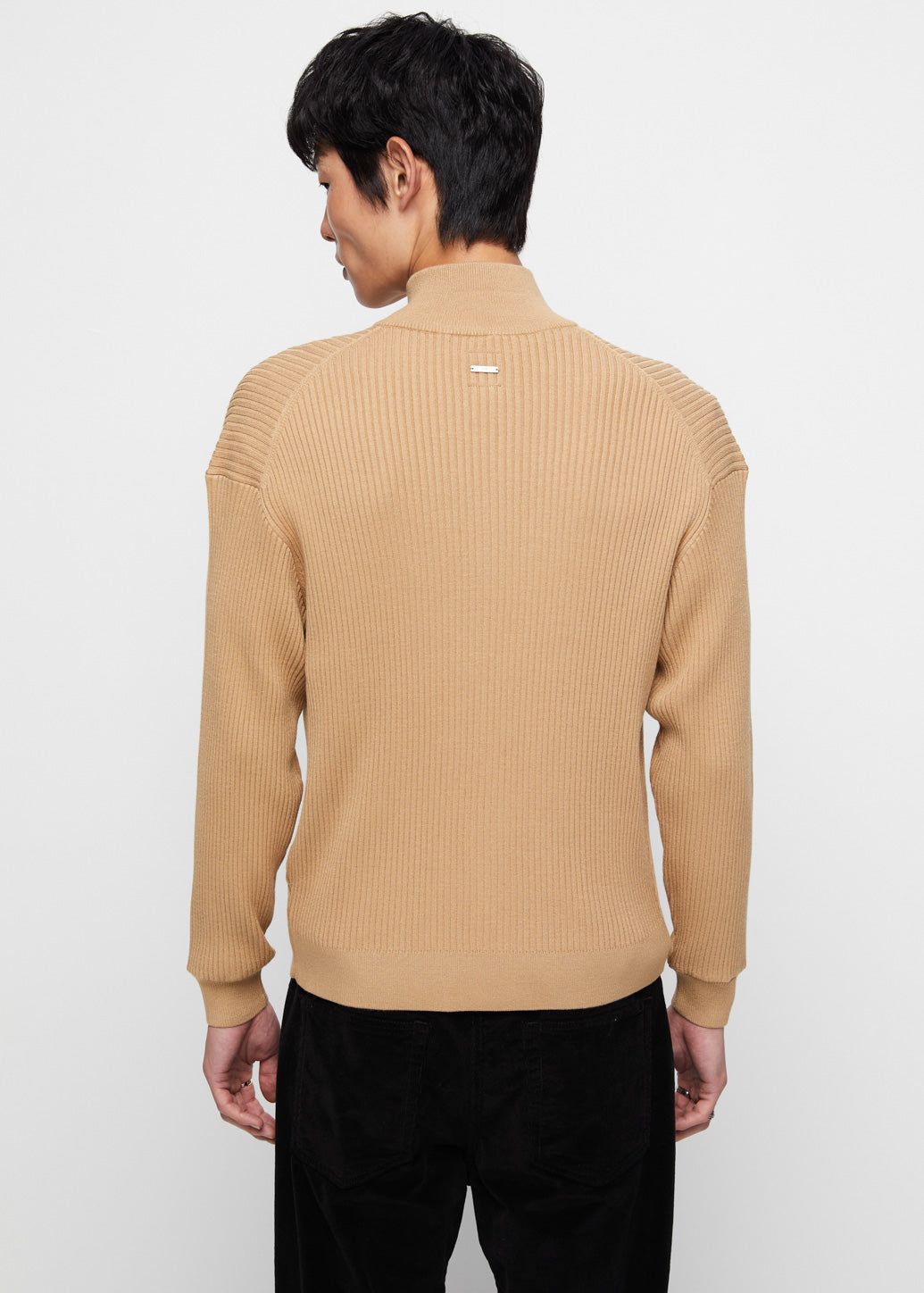 Here is the best effortless cool with this patterned knit sweater. A unique collared and two-way zipper on the front elevates the loose sweater design. It comes in three versatile colors, making it a must-have piece for creating a chic, minimal winter outfit.