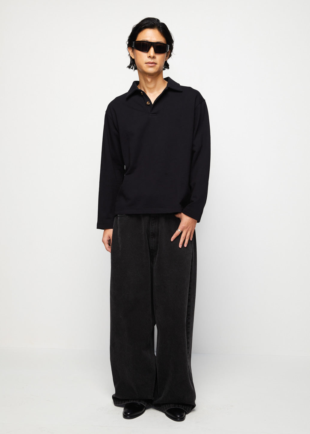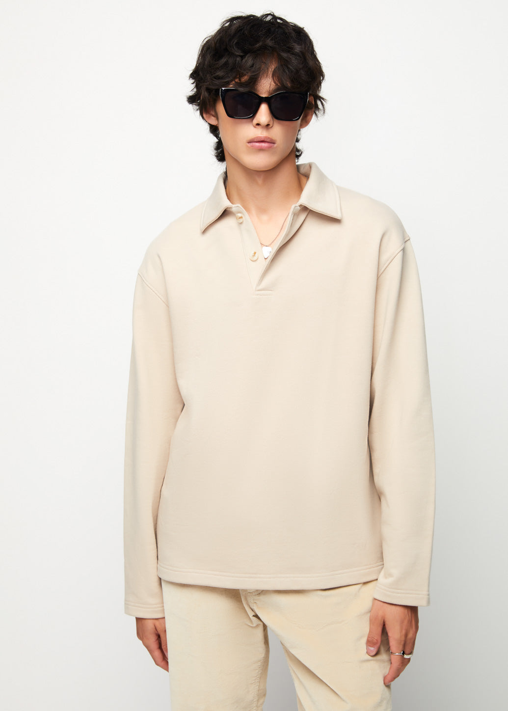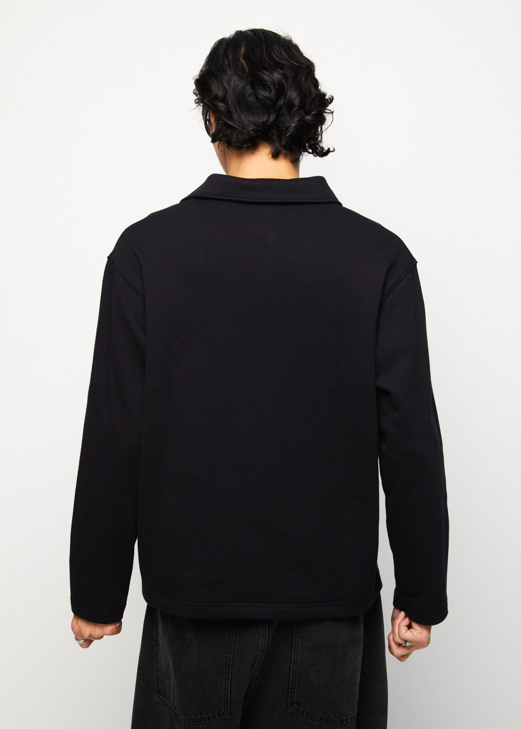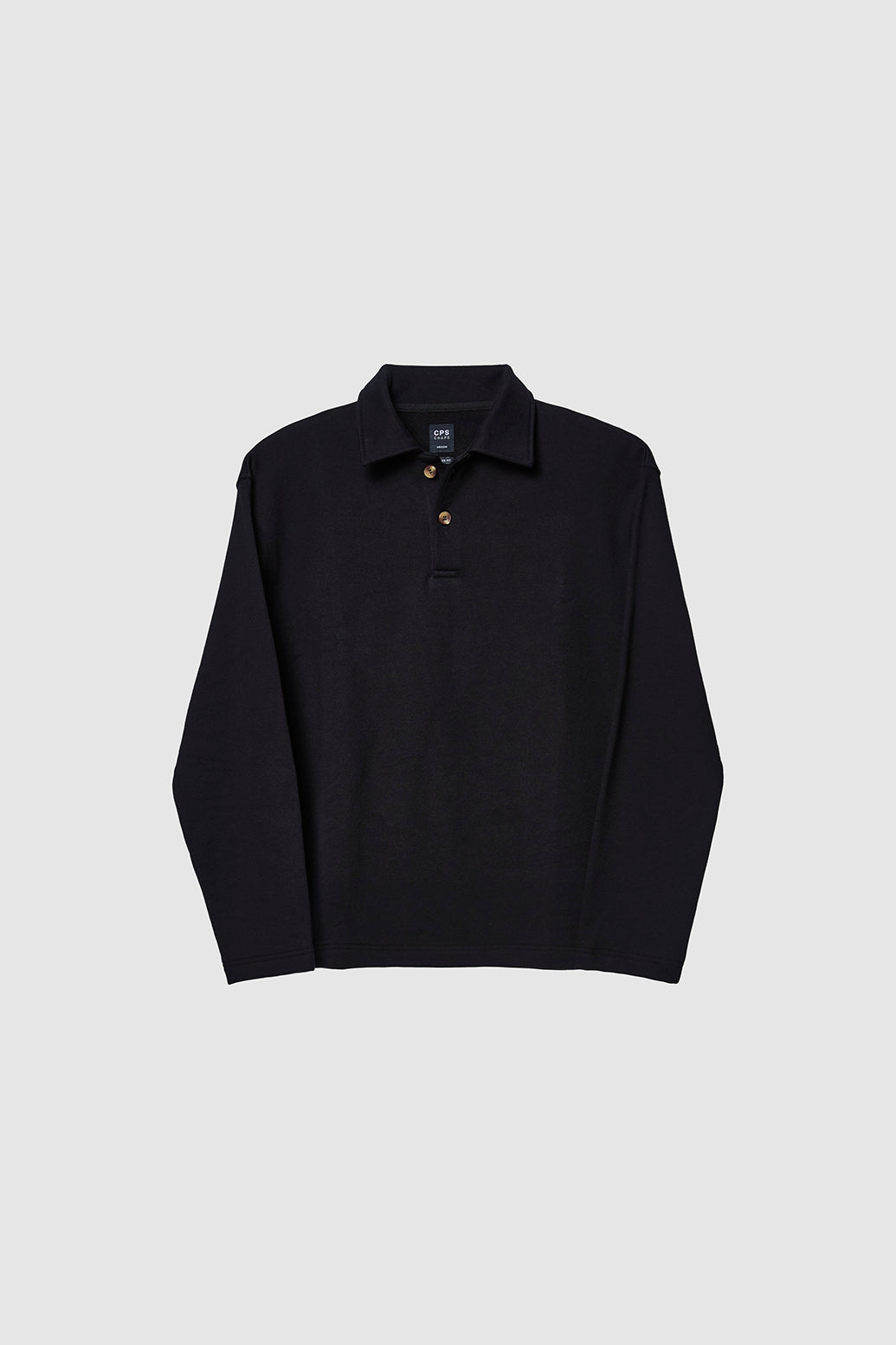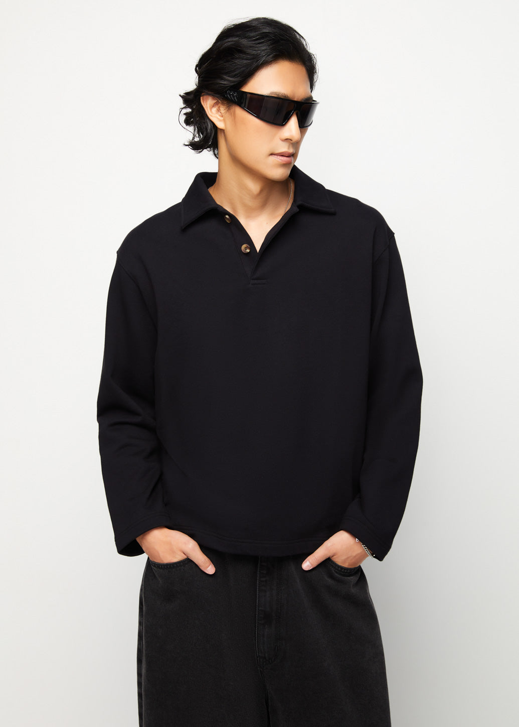 Long-sleeve basic rugby polo featuring a classic French terry knit collar for a soft, durable feel. Perfect for casual wear or paired with chinos or jeans, this minimalist piece adds versatile style to any outfit.