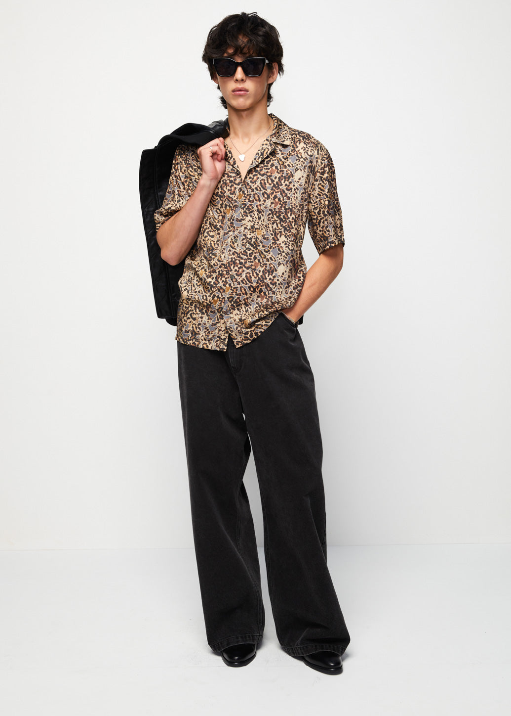 A short-sleeve camp collar leopard animal print shirt, it boasts a cool vintage vibe and is made from a lightweight viscose fabric for ultimate comfort. This shirt is an ideal choice for creating a stylish and classic look that works perfectly from day to night.