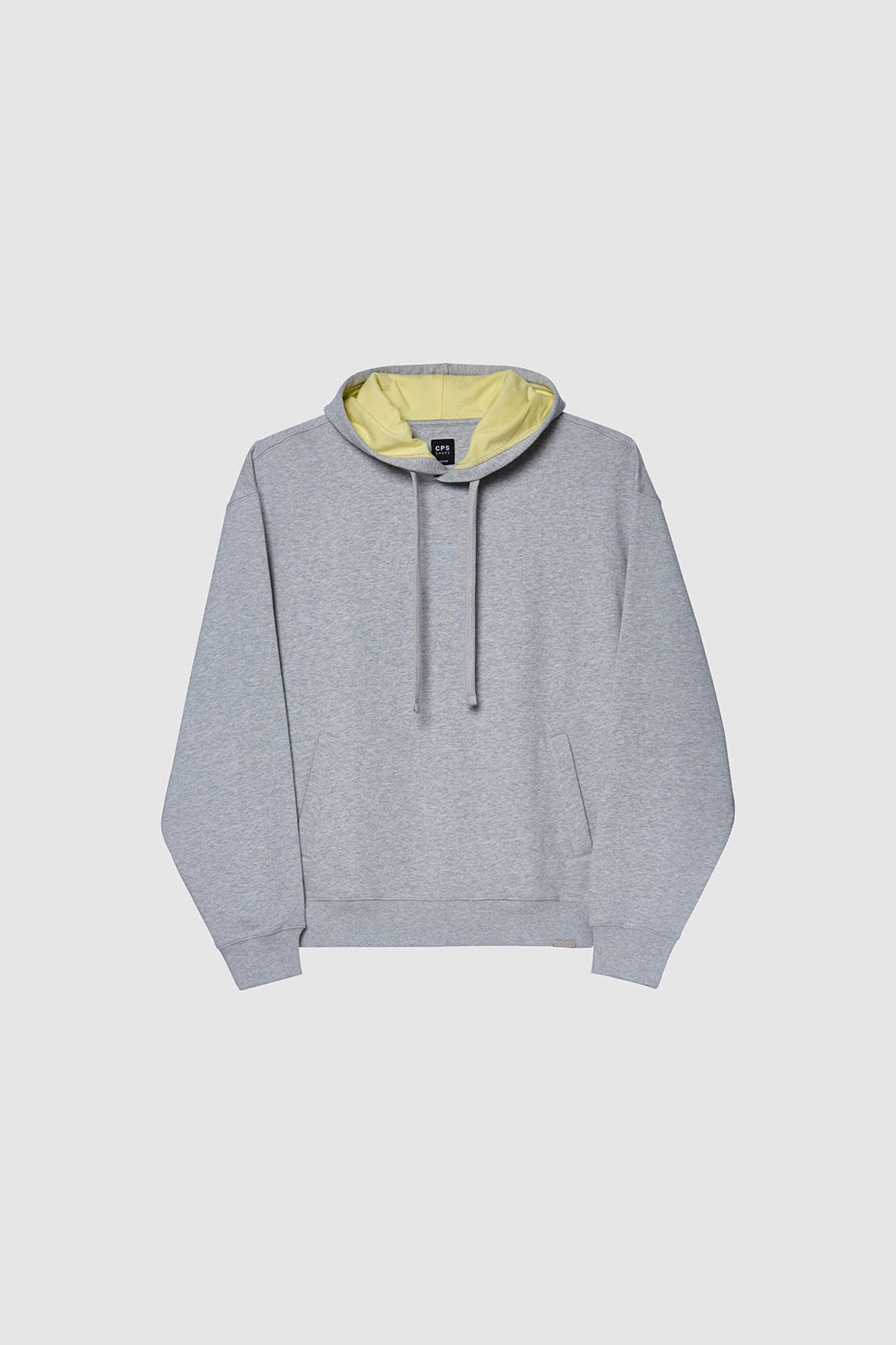 Wear it your way with a loose-fit top-dyed grey hoodie, elevated with a contrasting yellow lining for a striking touch. Perfect for everyday casual looks, whether worn solo or layered under a jacket, it adds a stylish vibe to the winter season day after day.