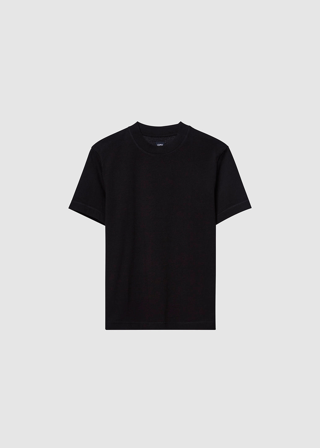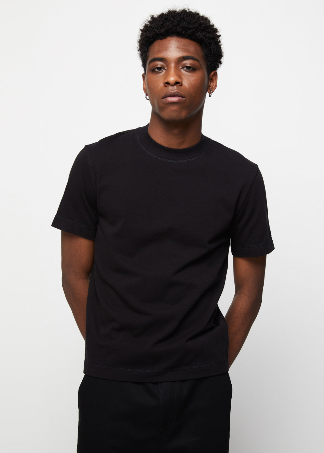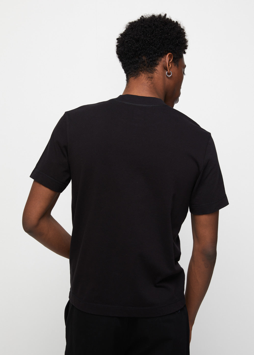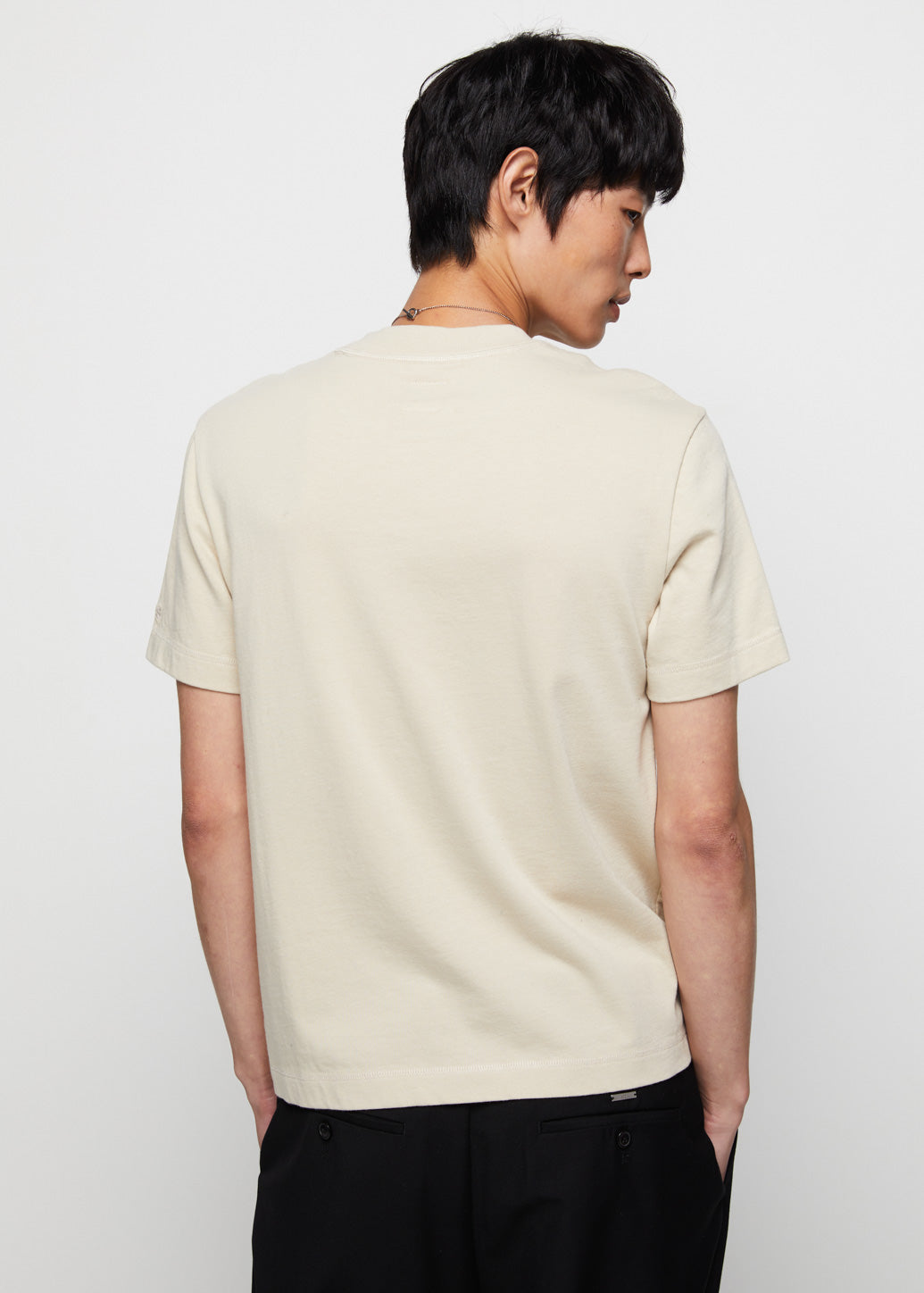The Corduroy Short-Sleeve T-Shirt in a classic basic tone features a flattering regular fit. It stands out with a sharply detailed high-ribbed neck and subtle embroidered logo lettering on the sleeve cuff. Pair it with denim or chinos for an instant, effortlessly cool casual look.