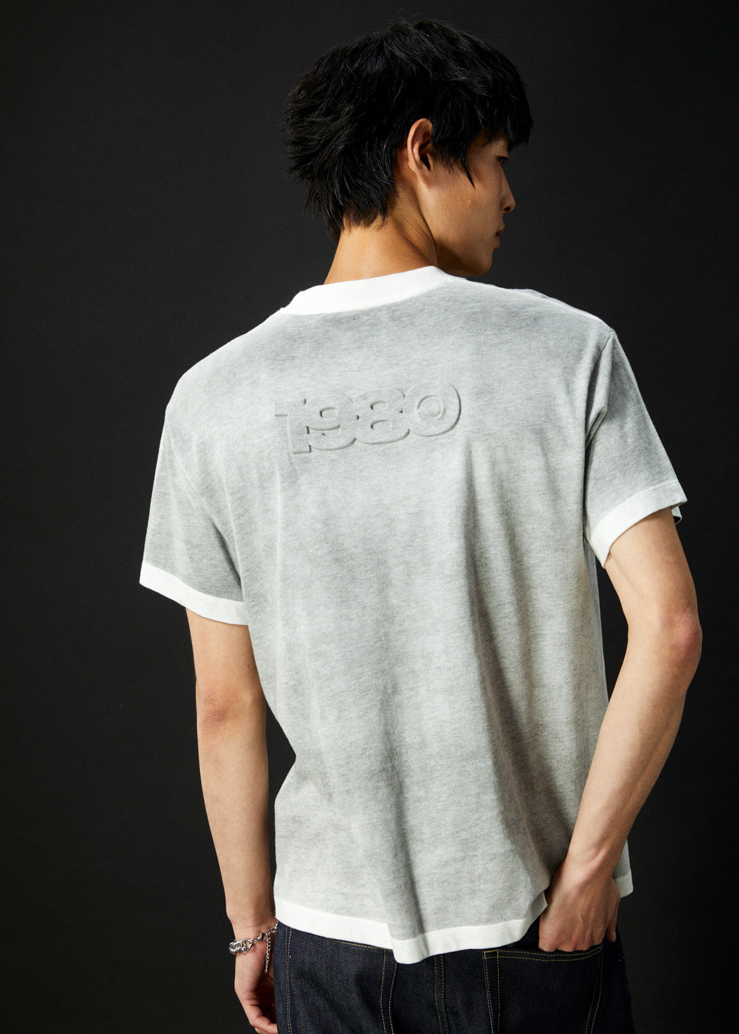 Effortlessly cool and classic with a beige T-shirt, your new minimalist essential. It features subtle sophistication with embossed logo detailing on both the front and back, elevated by crisp contrast piping on the collar and sleeves. Perfect for a casual look or a semi-formal outfit paired with a blazer for a unique style.