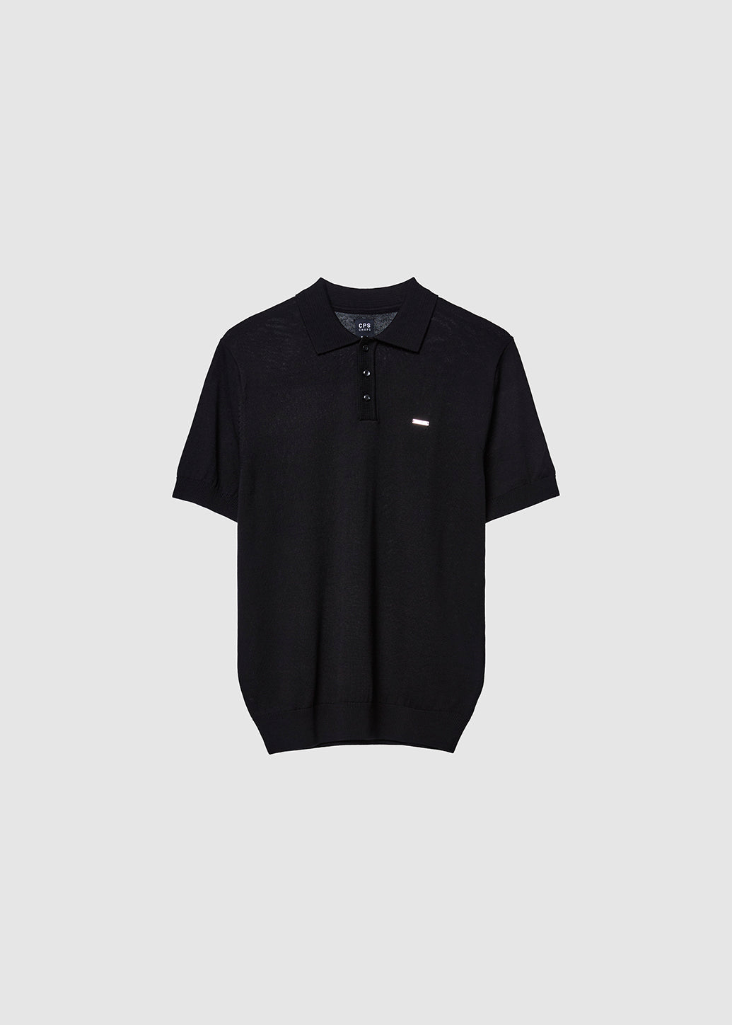 Elegant knitted polo shirt featuring a metal name tag on the chest for a distinctive minimalist detail. Polished and stylish, it’s easy to mix and match for everyday wear, embodying the standout CPS CHAPS style.
