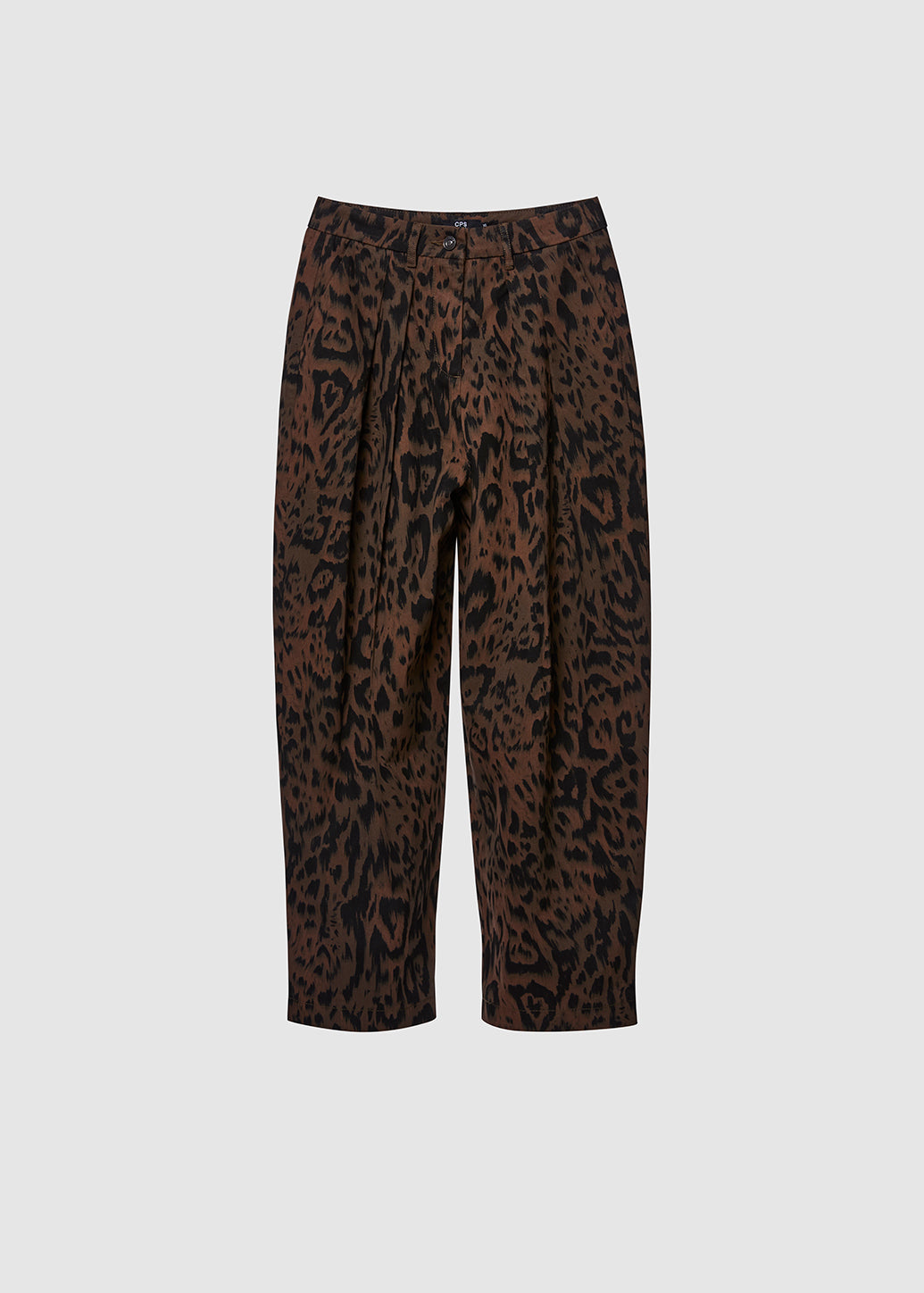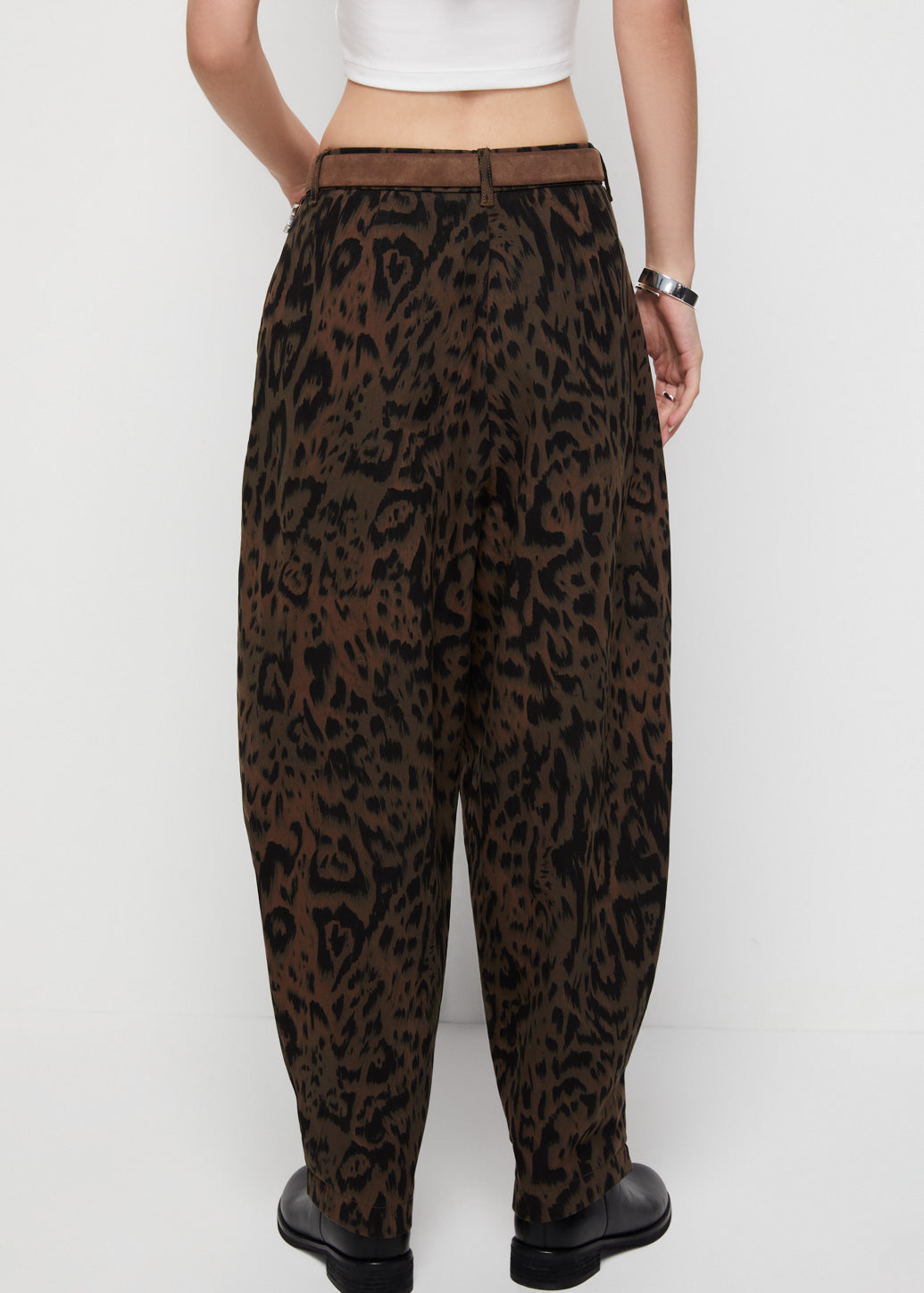 Leopard print wide-leg trousers with subtle pleats at the waist for added volume and standout style. Pair with a padded-shoulder tank or a classic shirt to elevate your casual look with bold confidence.