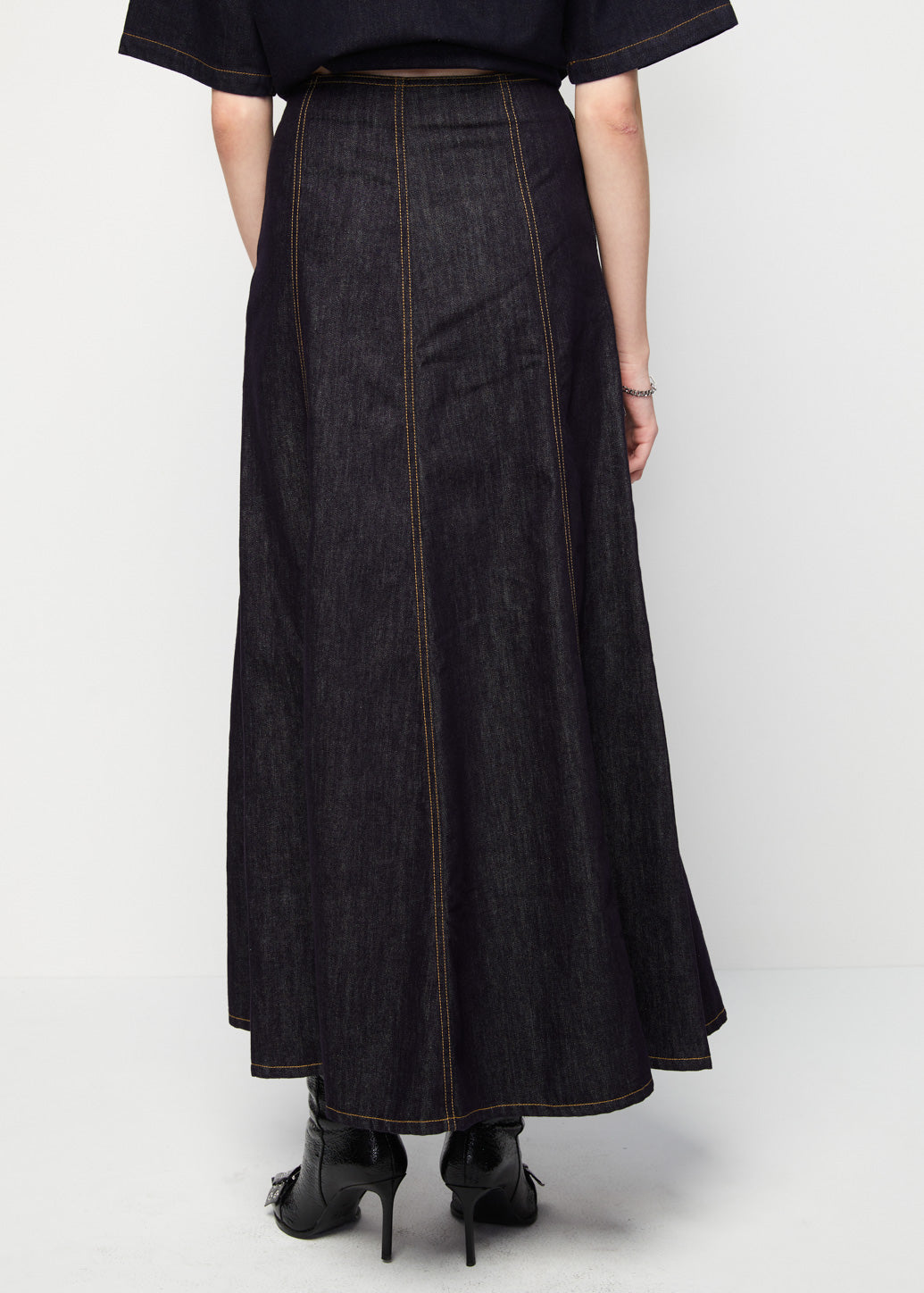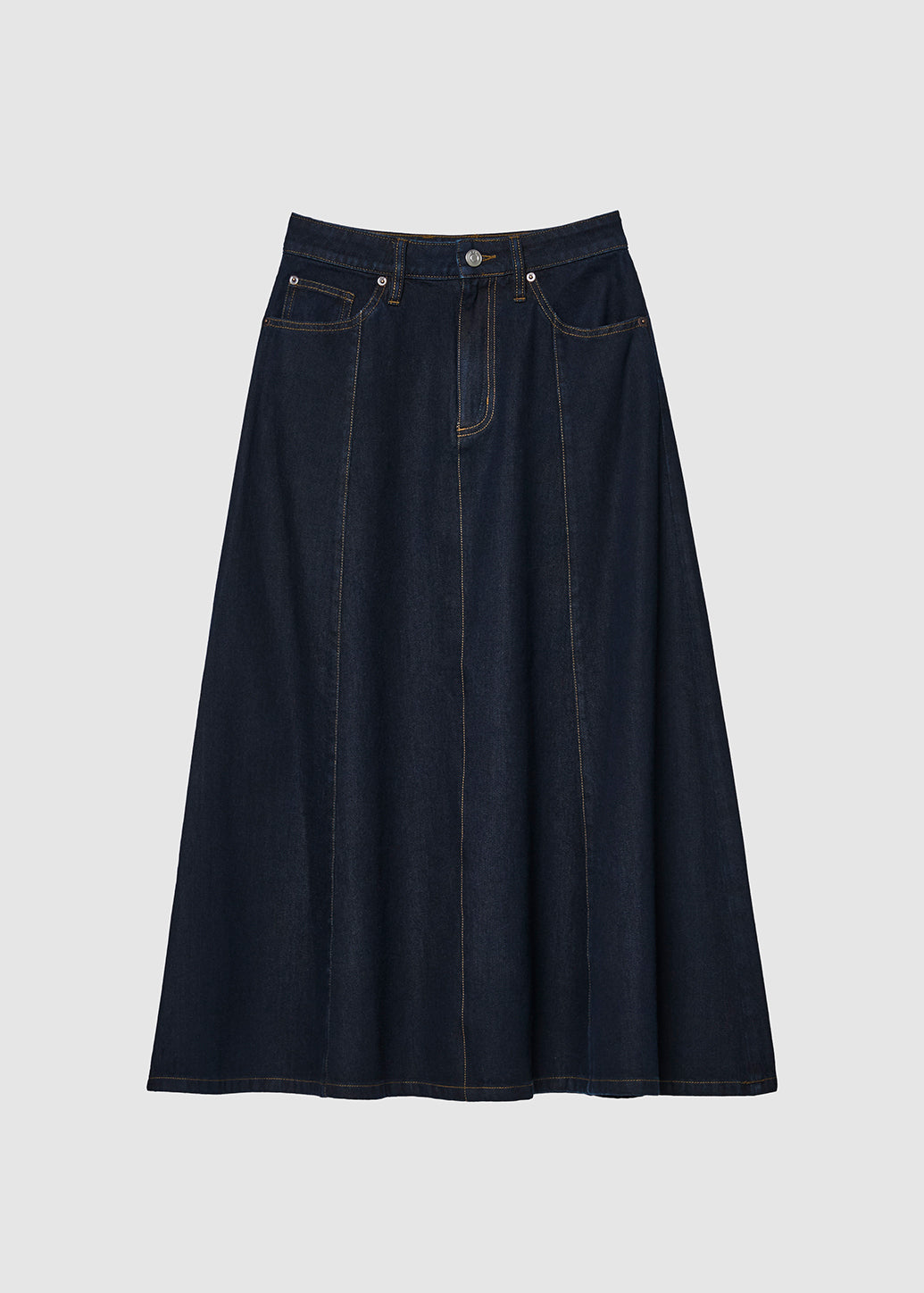 Experience timeless fashion with our indigo denim midi skirt. Its classic A-line silhouette with a flared hem and cool belt loops gives it a chic yet classic feel. This versatile skirt is perfect for pairing with a sweater or a crop top, adding a warm but edgy touch to any outfit.