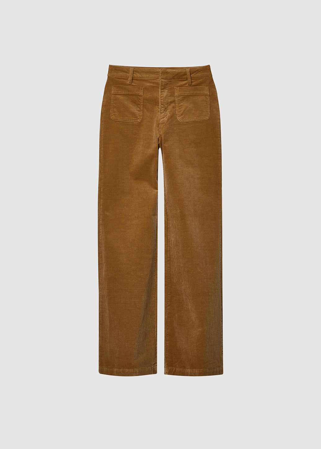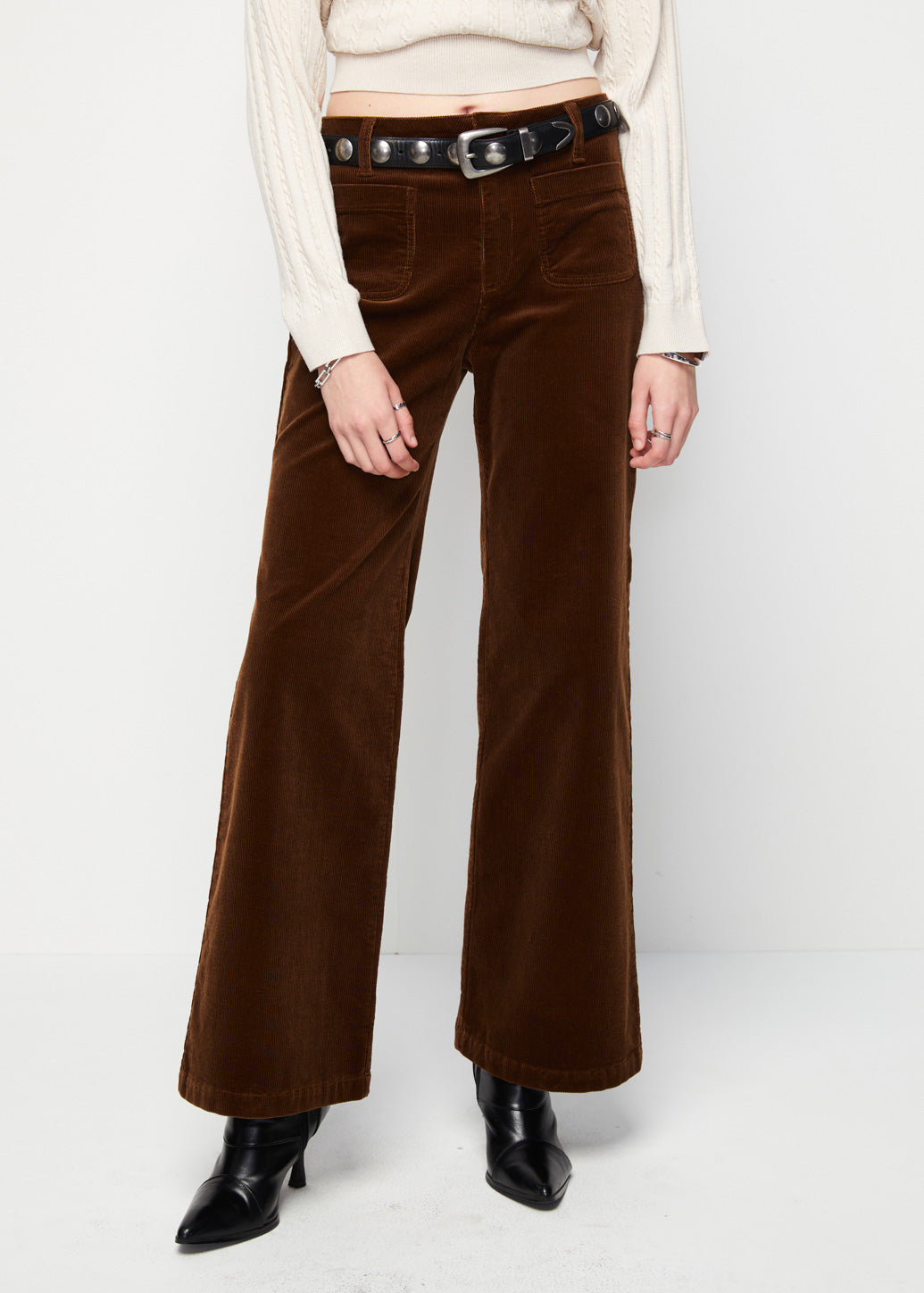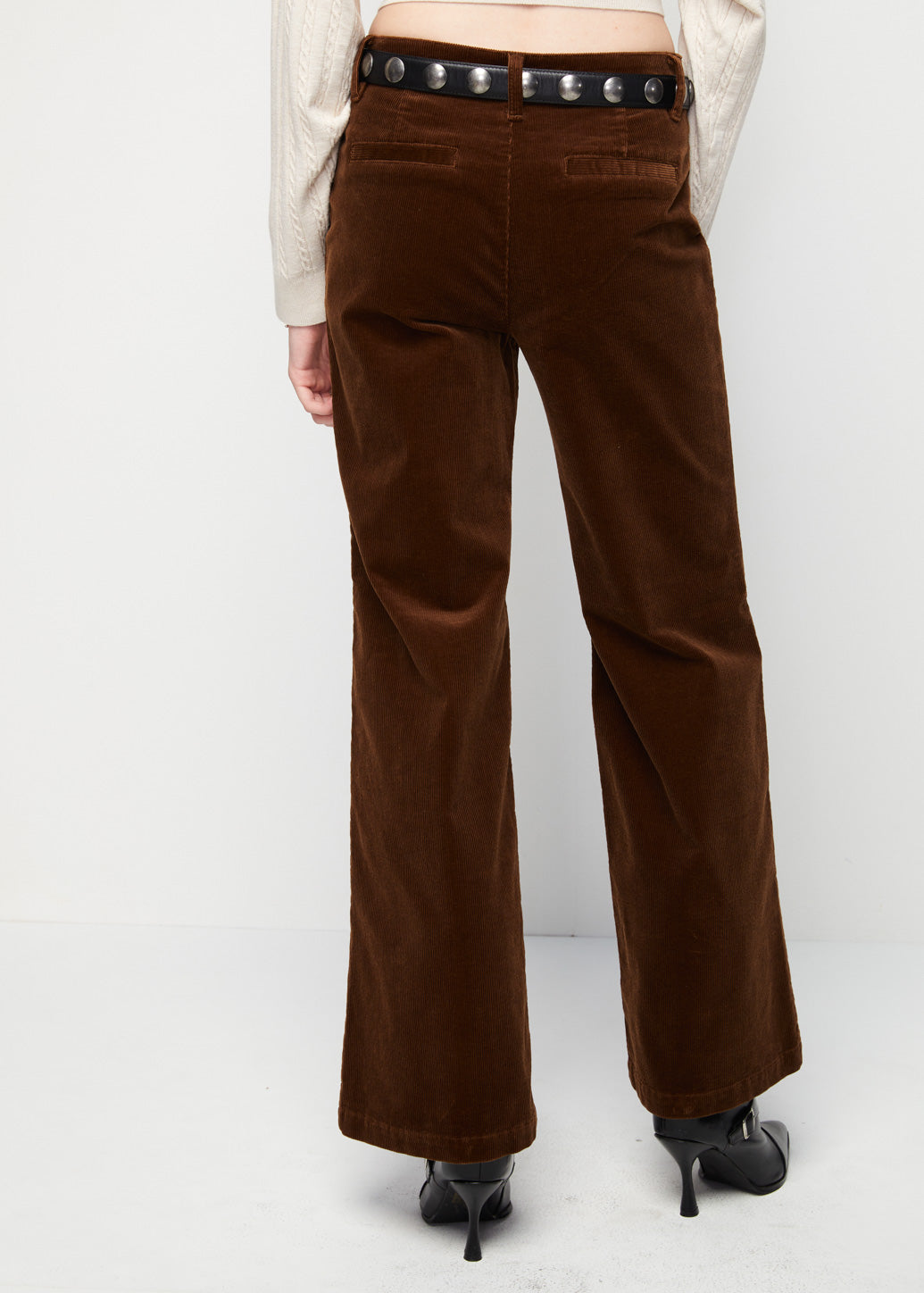 Corduroy flared pants in a classic design, available in two basic colors for versatile style and wear. Comfortable and easy to style, they pair perfectly with jeans or denim skirts to complete a standout minimalist everyday look.