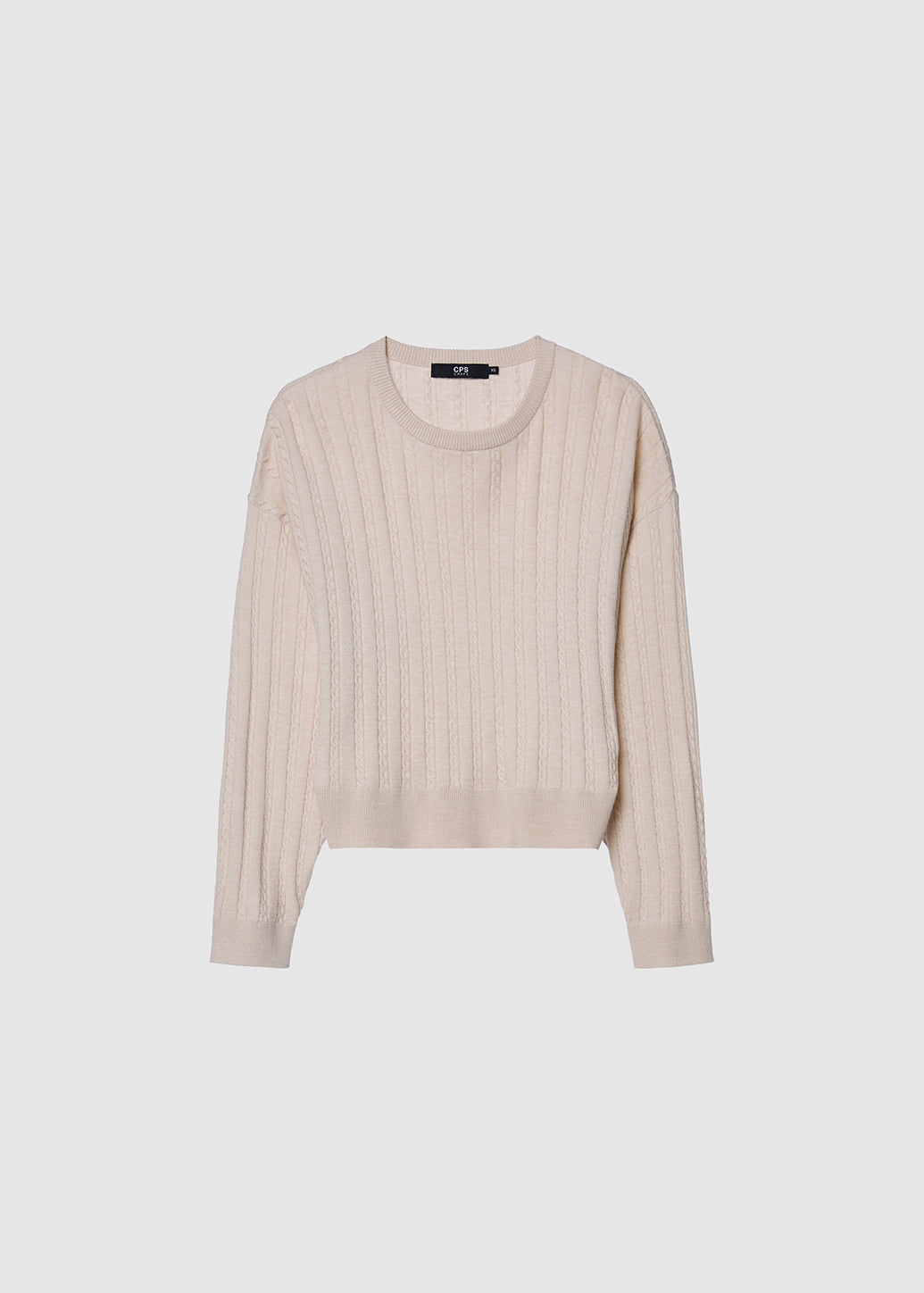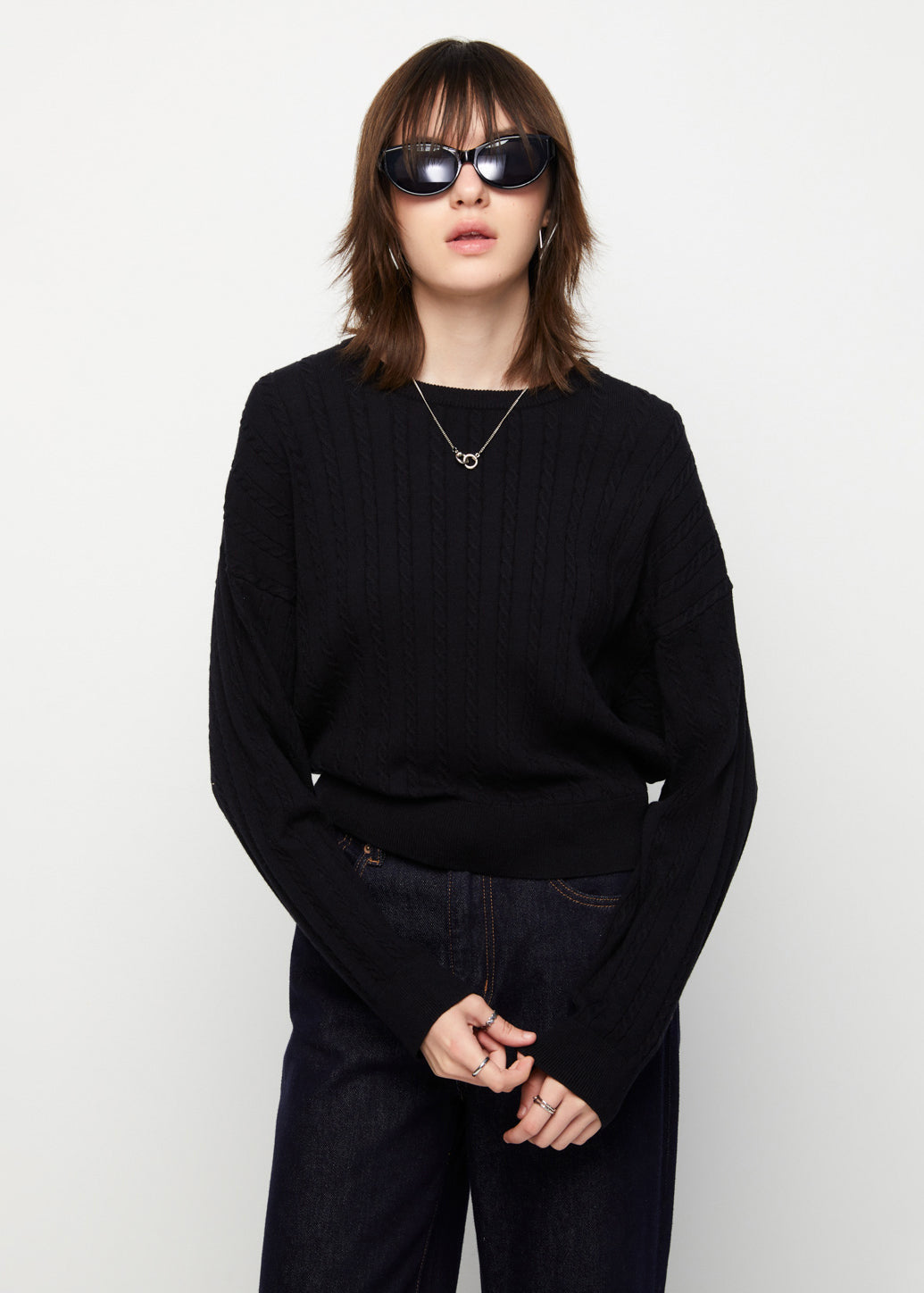Relaxed long-sleeve pullover featuring a textured cable-knit design with ribbed cuffs and hem for a comfortable and snug fit. Pair it with your favorite pants or skirts to create a versatile casual look perfect for everyday wear.