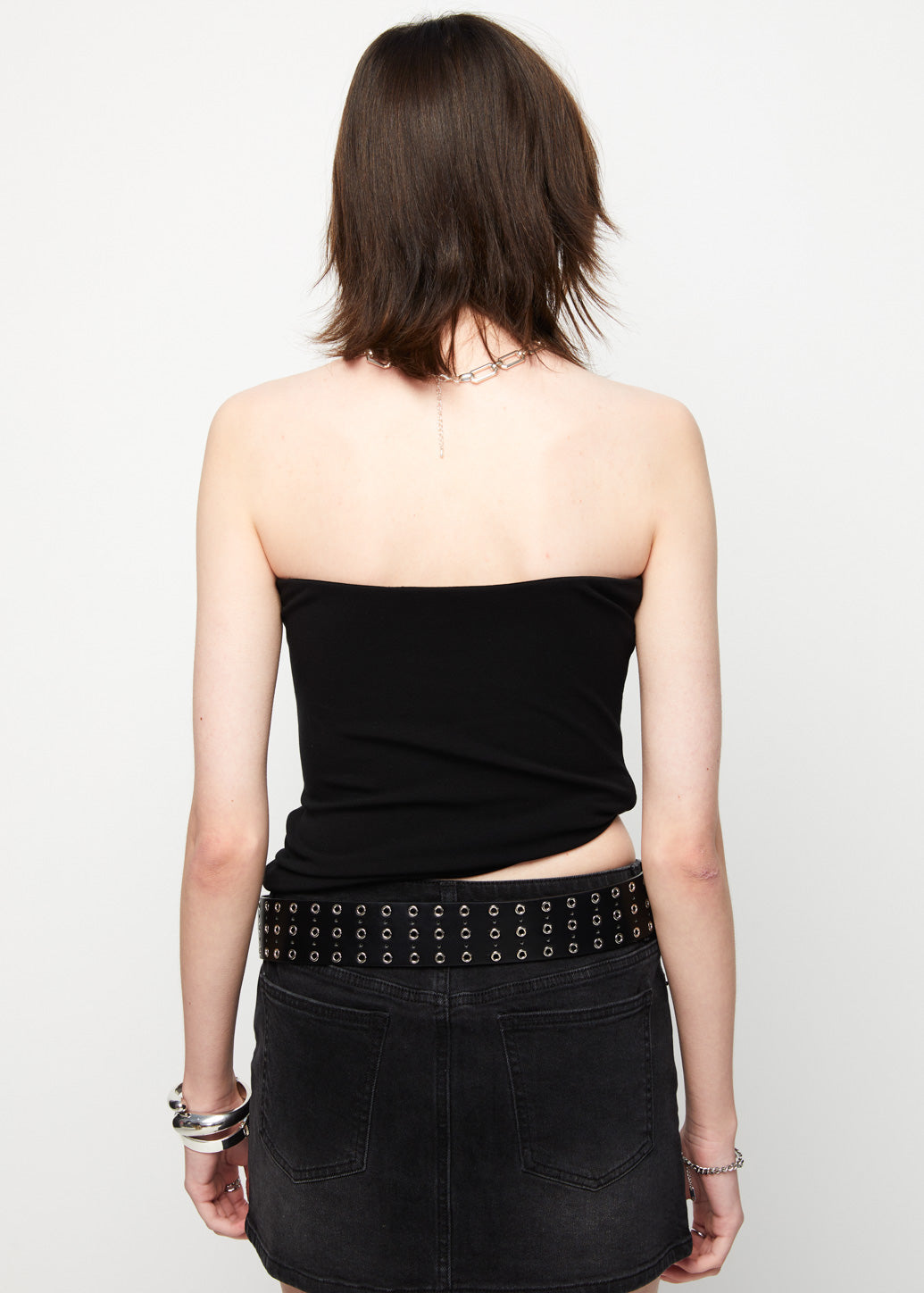 A sleek and sexy look with our elegant black tube top. It features a unique C-logo stud detail on the side waist. This versatile top is easy to match with a skirt or skinny jeans, adding a touch of sophisticated style and a hint of sexiness to any outfit