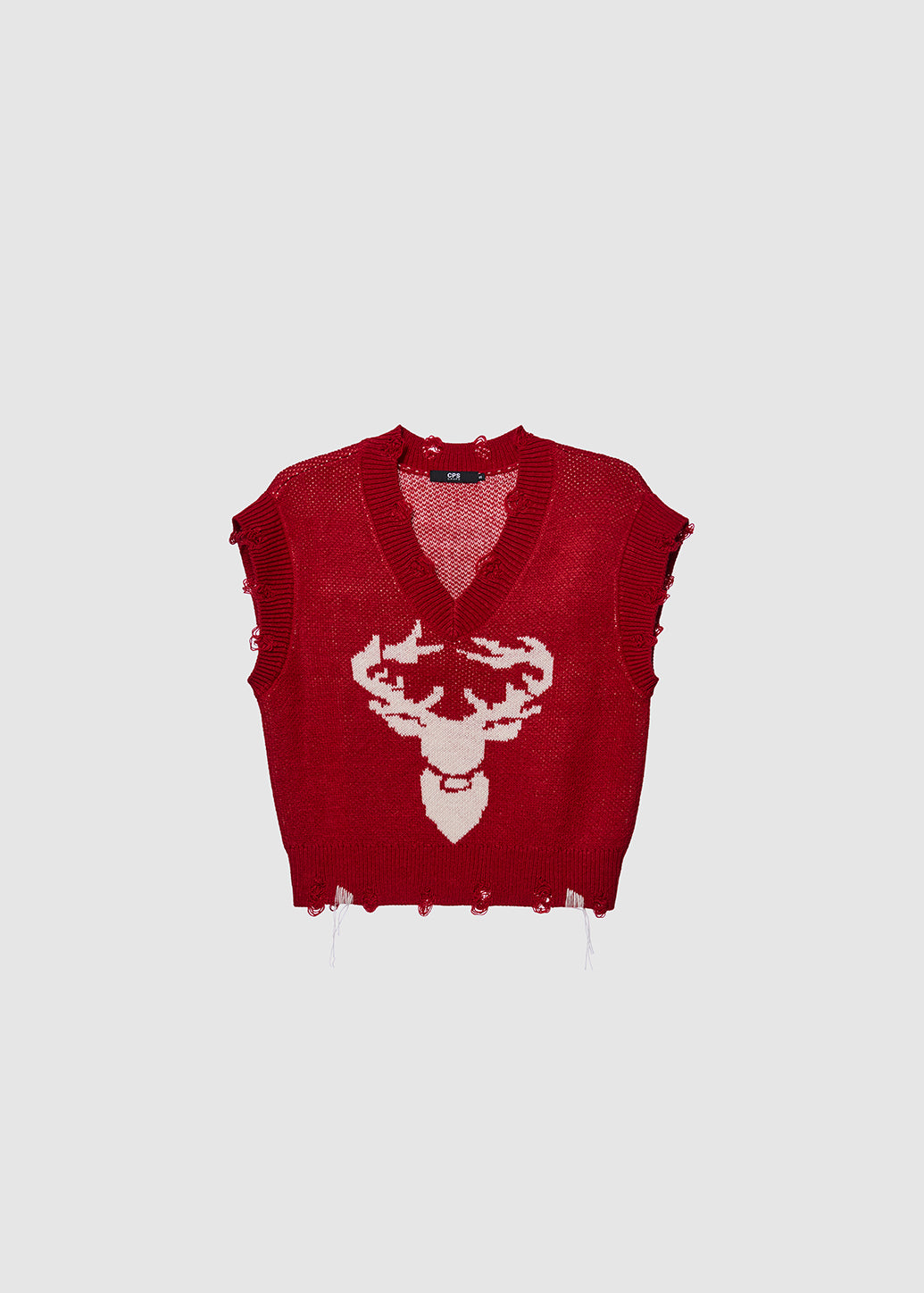 DEER FRAYED HEM KNITTED VEST
