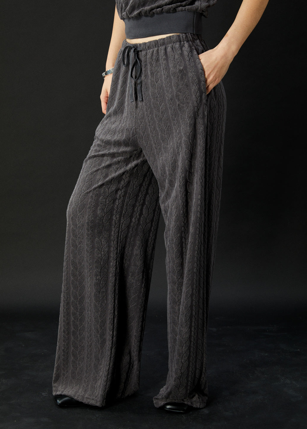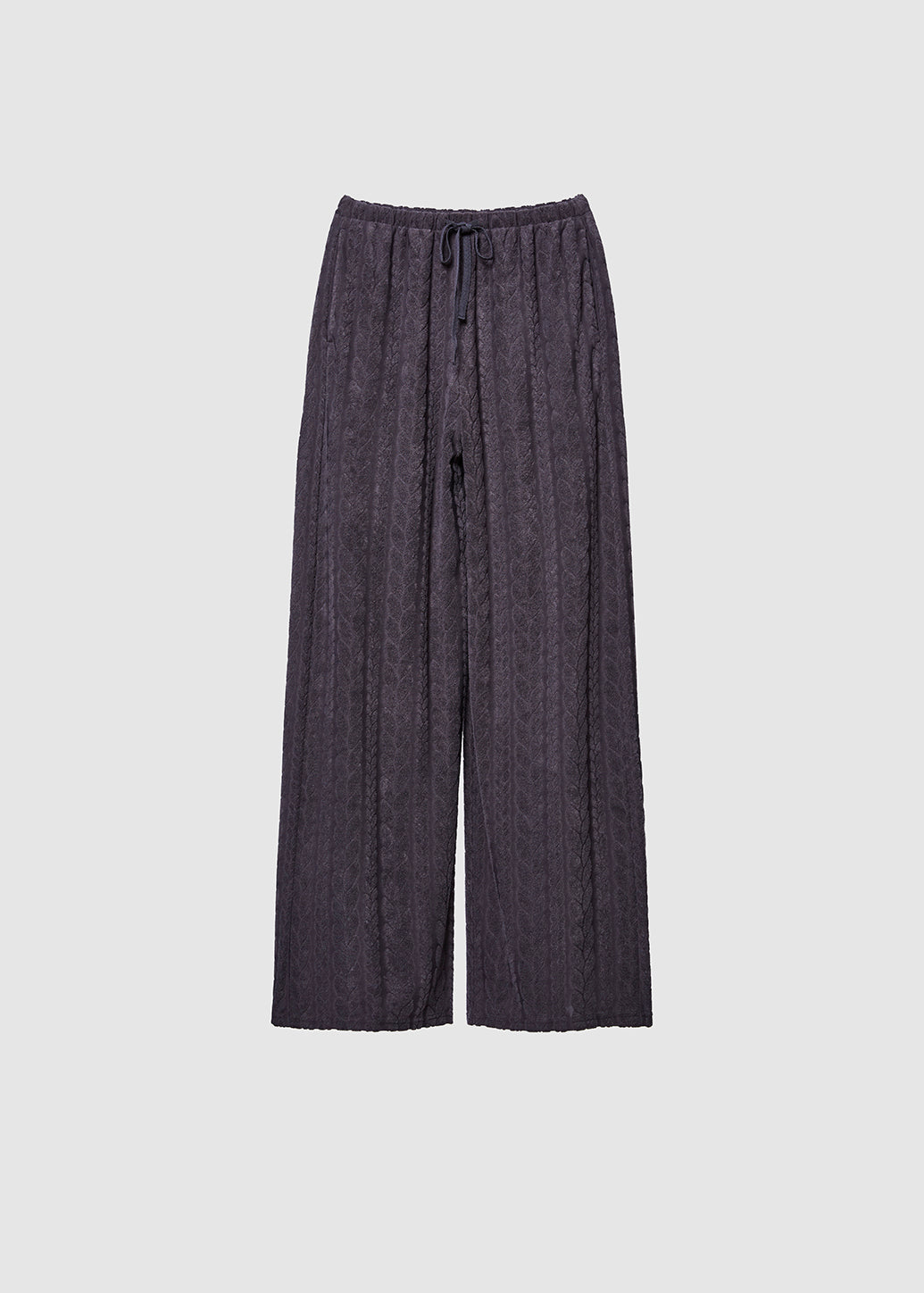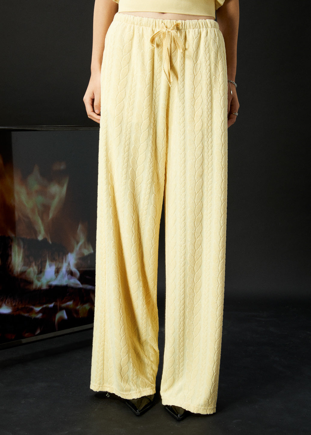 These cable-knit pants feature an elastic waistband with drawstrings for a customizable fit and effortless comfort. Designed with a relaxed fit silhouette, they offer a soft textured feel—perfect for adding warmth and casual style to your laid-back days.