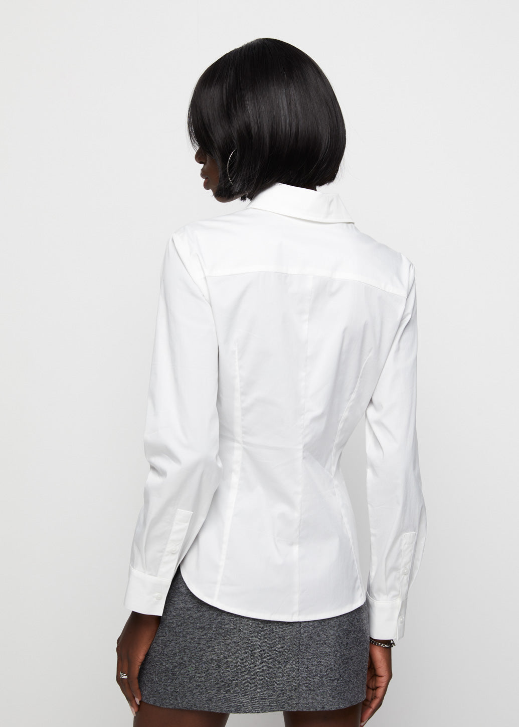 A regular-sleeve shirt with a sleek design, featuring side pleat stitching that shapes the waist for a tailored silhouette. Equipped with flap chest pockets, it brings a workwear-inspired vibe—perfect for casual daily looks or polished office outfits suitable for any occasion.