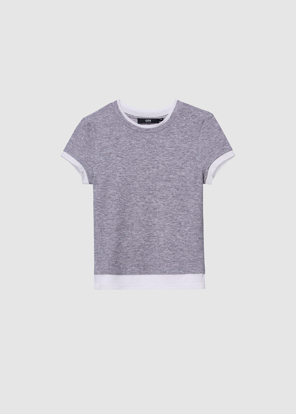 A regular-fit gray top-dyed T-shirt with a stylish double-layered white inner detail, adding dimension to a minimal look. Pair it with your favorite jeans; it’s effortless to wear while keeping your everyday outfit cool and stylish.