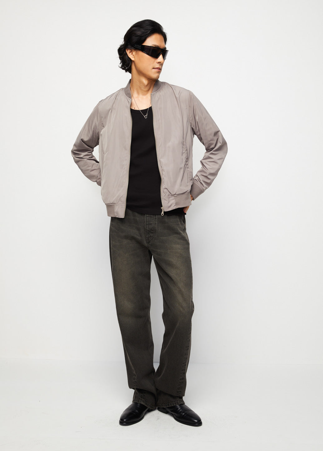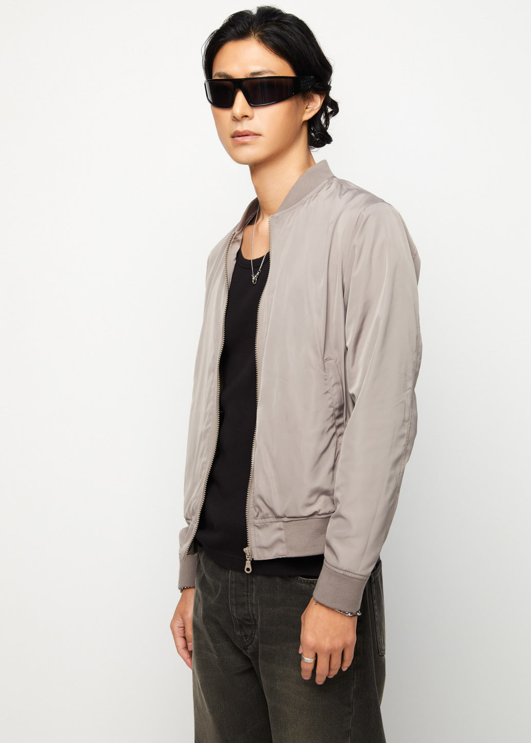 Infuse your wardrobe with timeless appeal using our nylon bomber jacket. This classic piece features a front zip and ribbed cuffs and hem. It’s perfect for layering and creating a chic, minimal look for any occasion.