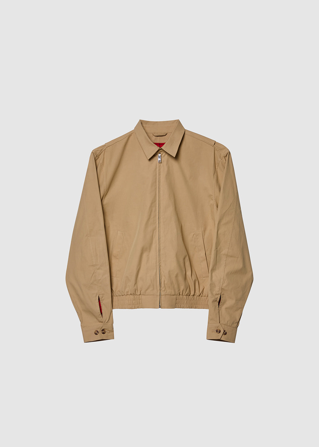 Achieve a cool look with our classic relaxed-fit blouson jacket. This vintage-style item stands out with a red checkered lining, revealing a charming '90s aesthetic. Its polished design makes a statement with various bottoms to suit any occasion.
