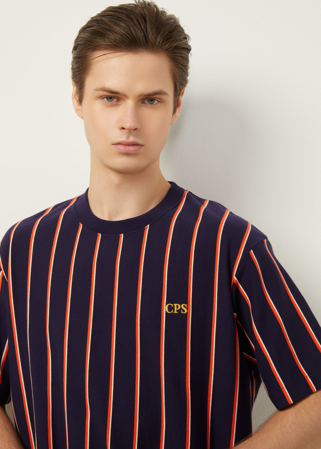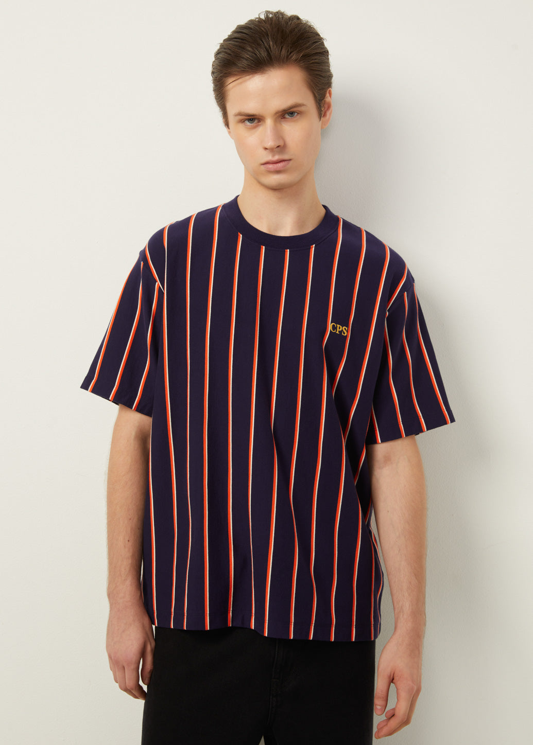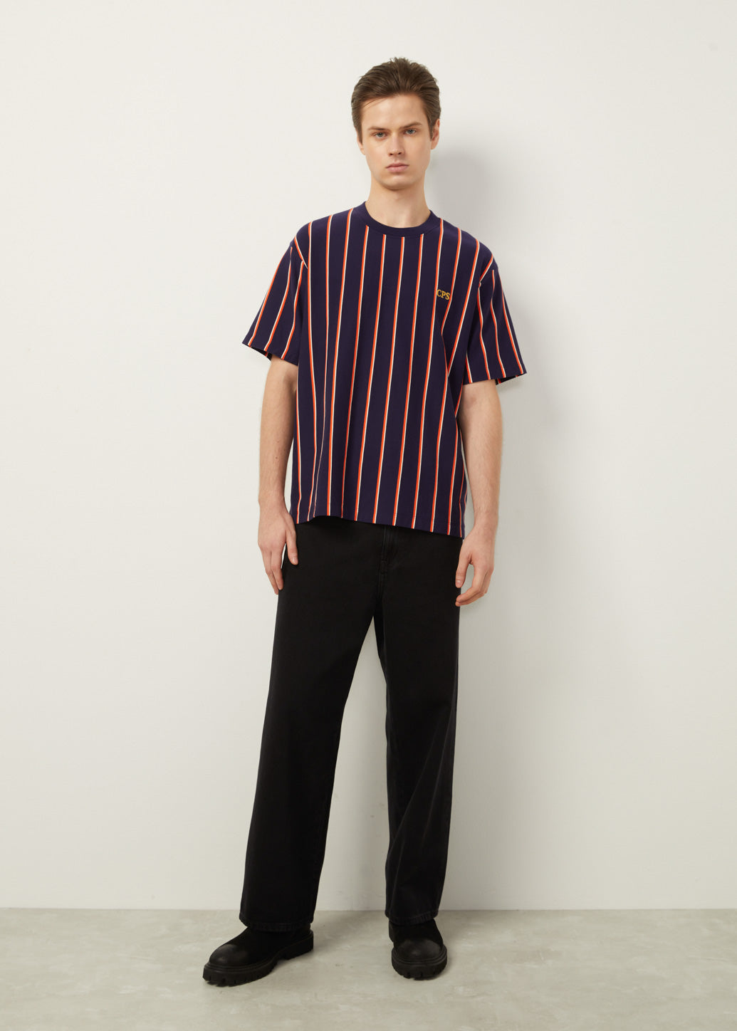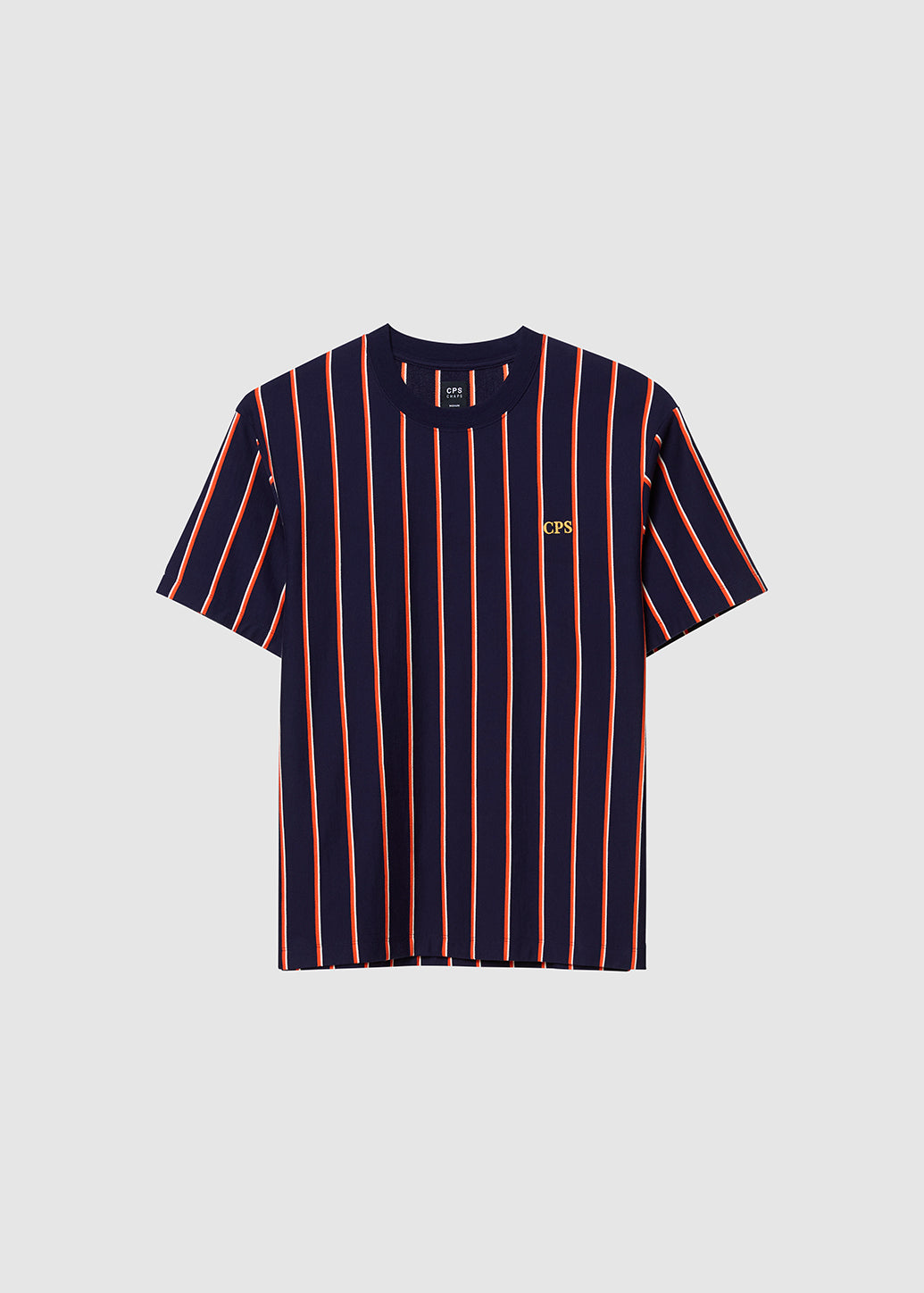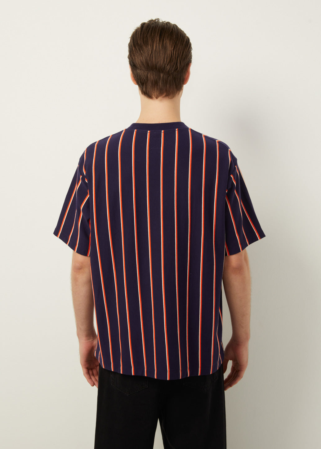 Embrace a timeless, casual look with this navy striped T-shirt, featuring a subtle detail on the chest. Match with jeans to elevate your everyday style with ease.