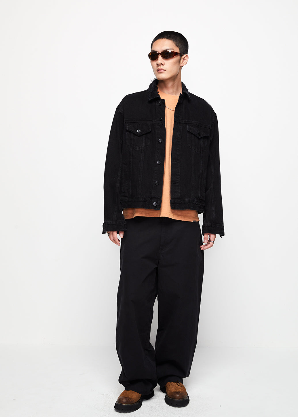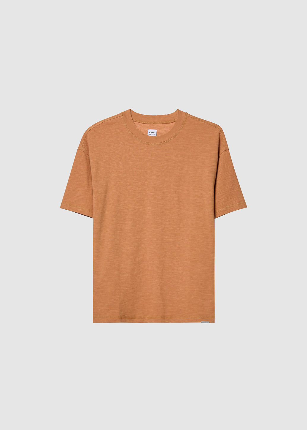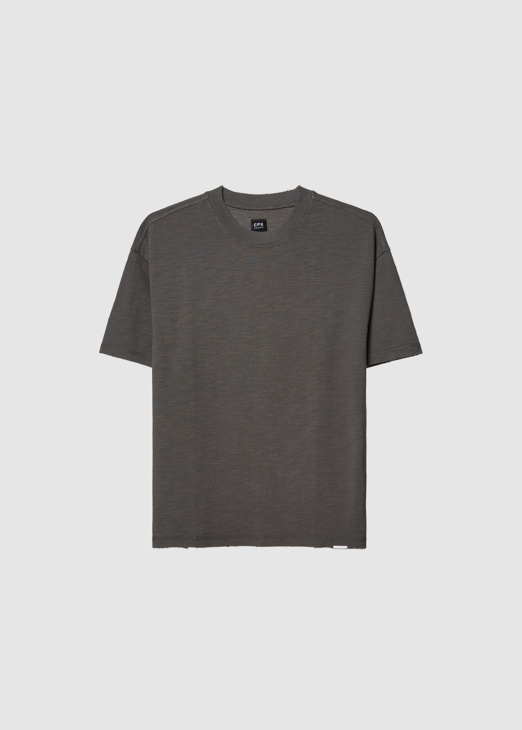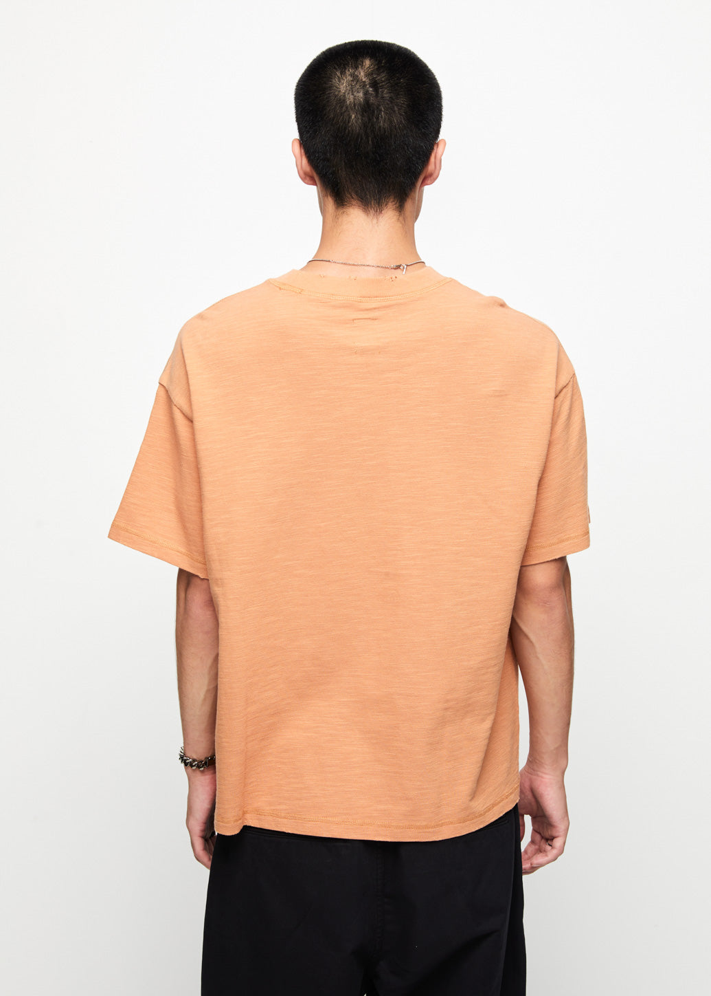 Elevate your T-shirt game with this loose-fit round neck, crafted from thick slub fabric for a soft and comfortable feel. Finished with destroyed edges for a rugged detail, it adds a unique touch to casual street looks.