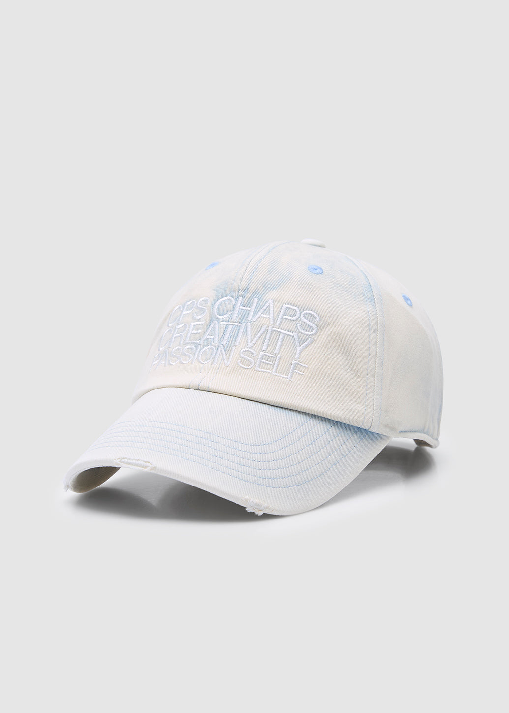 Washed denim cap with destroyed details, this vintage-inspired piece features embroidered "Creative Passion Self" lettering that reflects bold fashion identity and mindset. One of the easiest ways to upgrade your casual look with confidence and elegance is to add a stylish item to your collection.