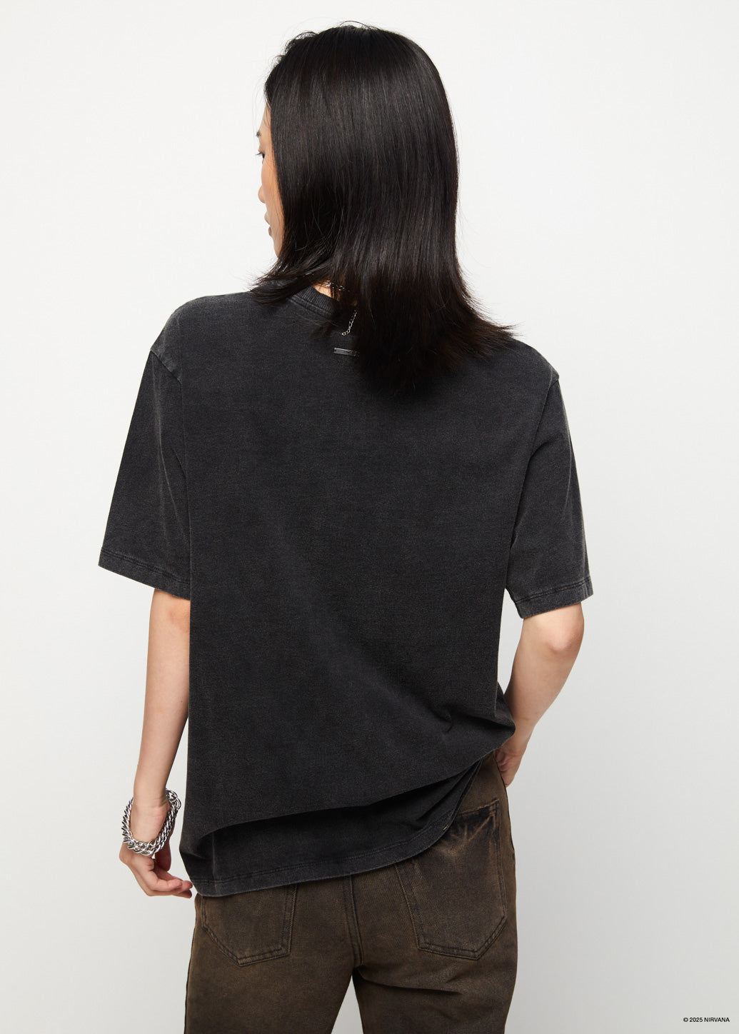 Print of the moment with this faded oversized round neck t-shirt. The design is elevated by a distinctive rock brand graphic print, a key piece from the CPS X Nirvana collaboration, that perfectly channels a 90s rock aesthetic. This tee pairs with denim, helping you create a timeless and chic retro rock outfit.