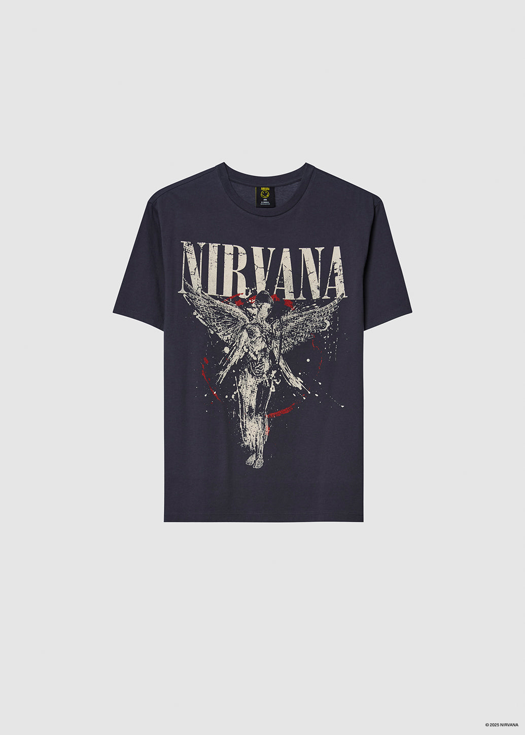 Oversized round neck T-shirt featuring iconic Nirvana graphics from the exclusive CPS X Nirvana collaboration. Designed with a washed finish that channels authentic ’90s rock spirit in style. Pair it with denim for a retro rock look full of unique character and timeless edge.