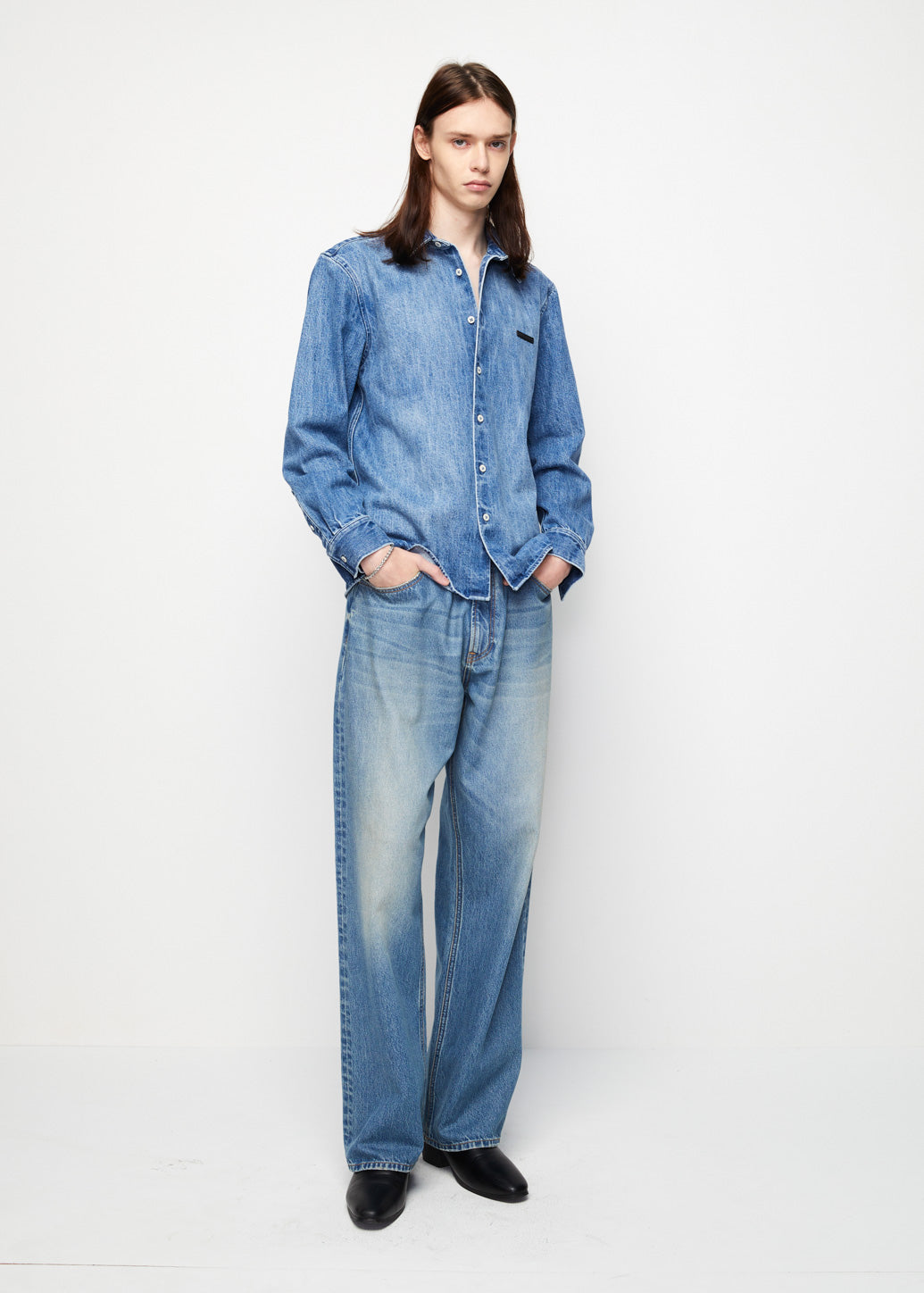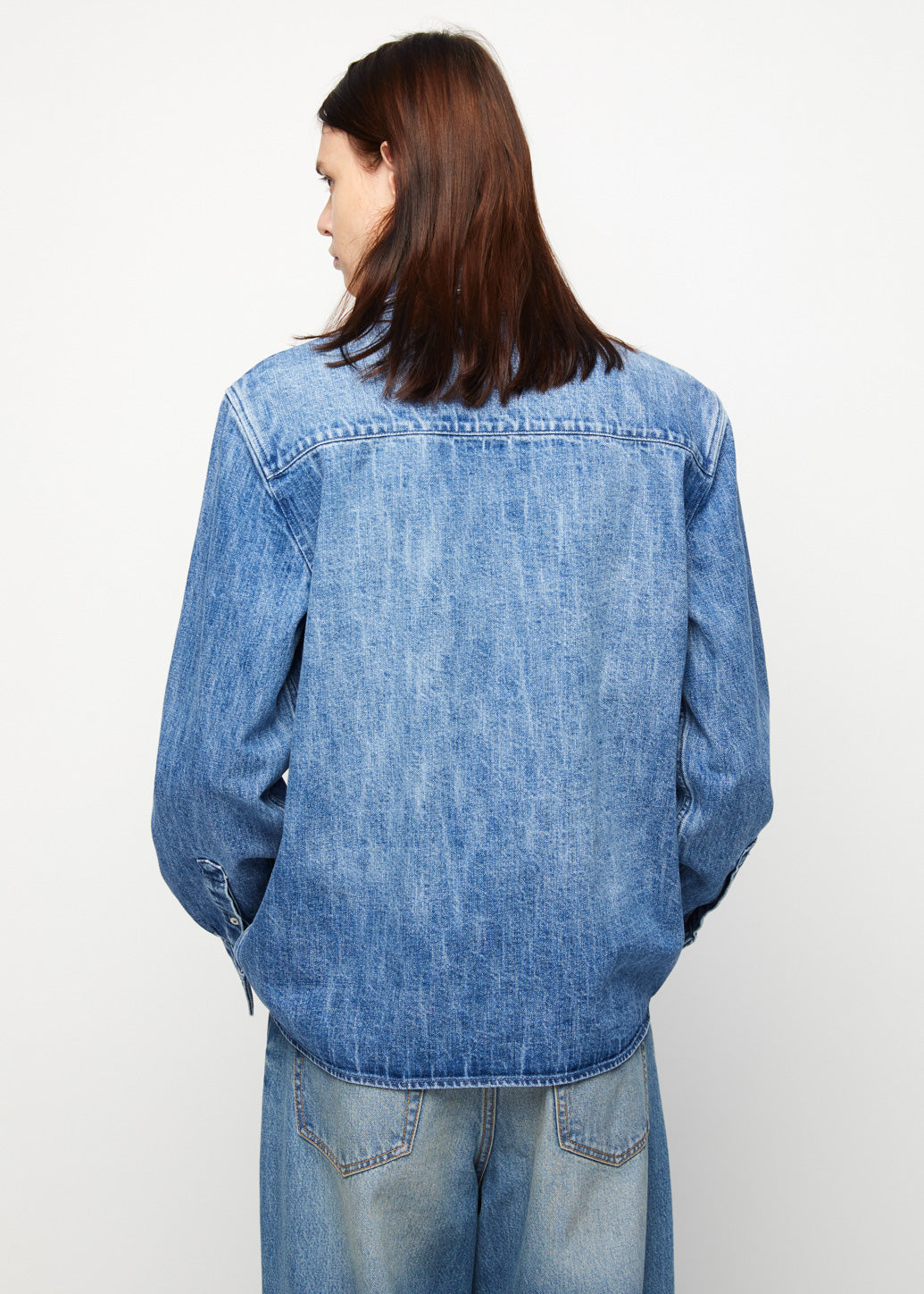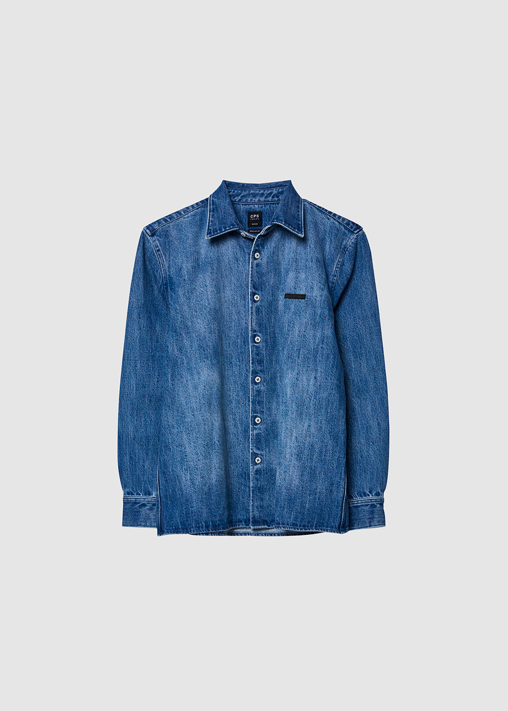 Long-sleeve denim shirt in a classic design, delivering a grunge-inspired edge. Finished with a distinctive chest logo detail for added character, it pairs effortlessly with your favorite jeans—perfect for casual days to retro workwear charm.