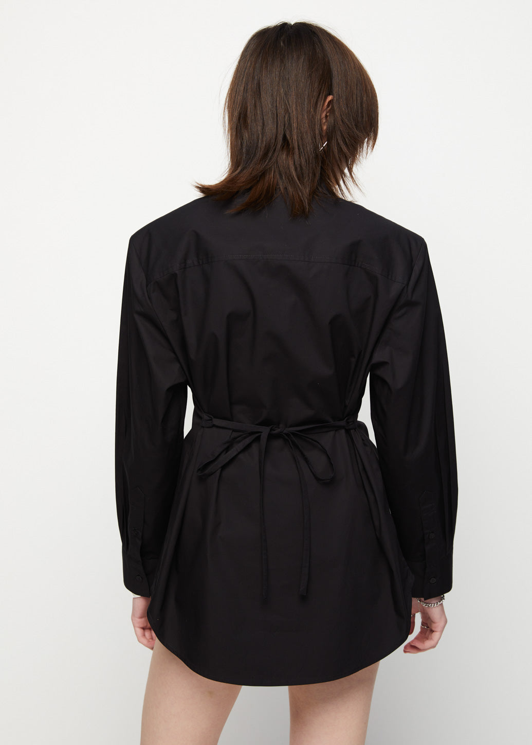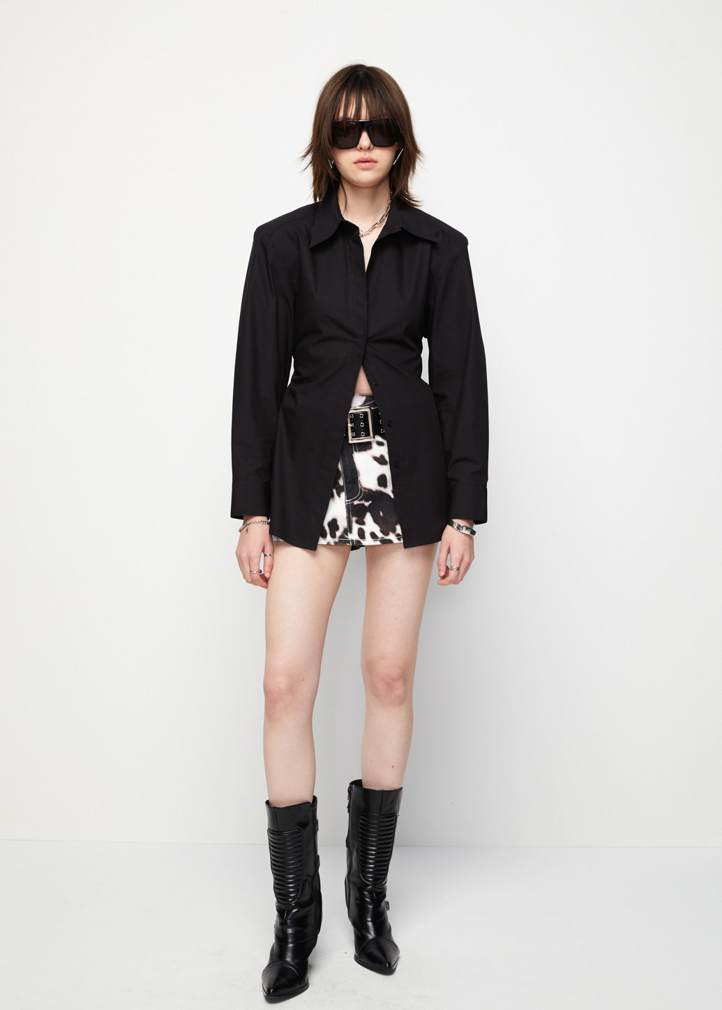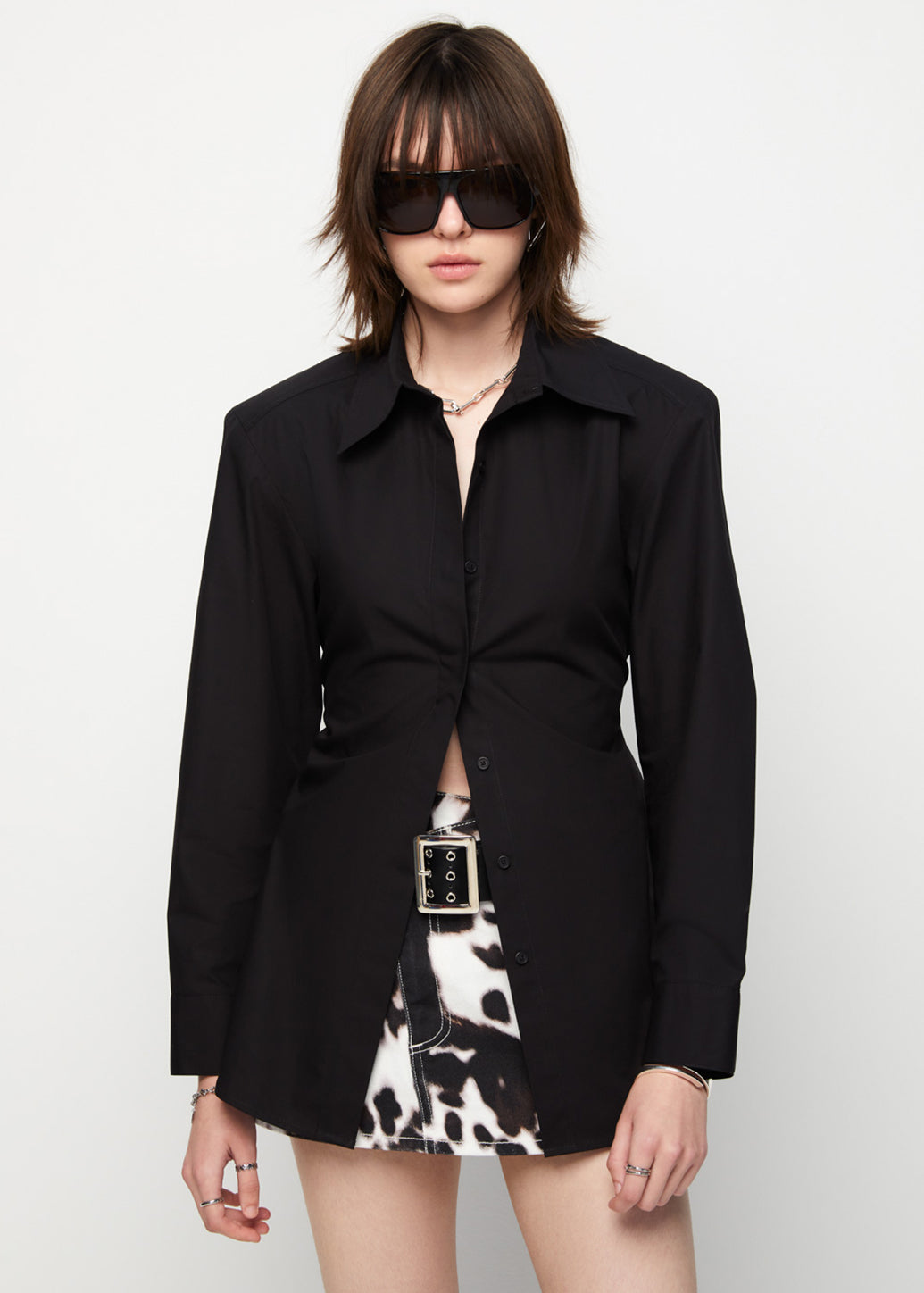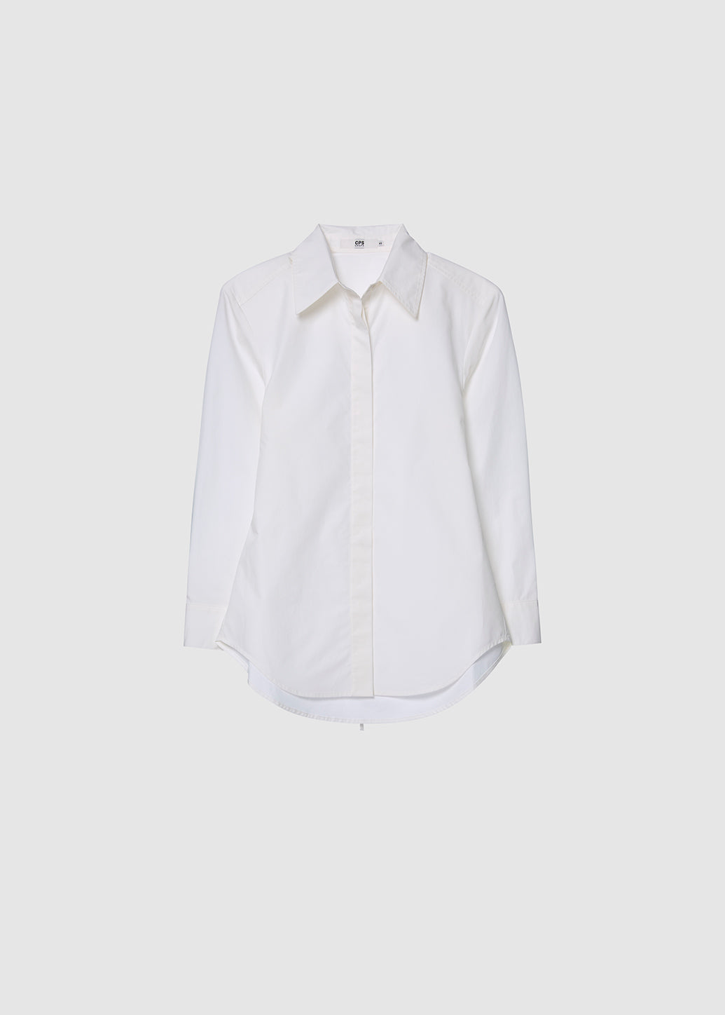 A basic-color oversized-fit shirt that is a comfy item to wear all day. With its classic collar and button-down front, it’s a versatile piece that transitions effortlessly from formal looks to casual styles.