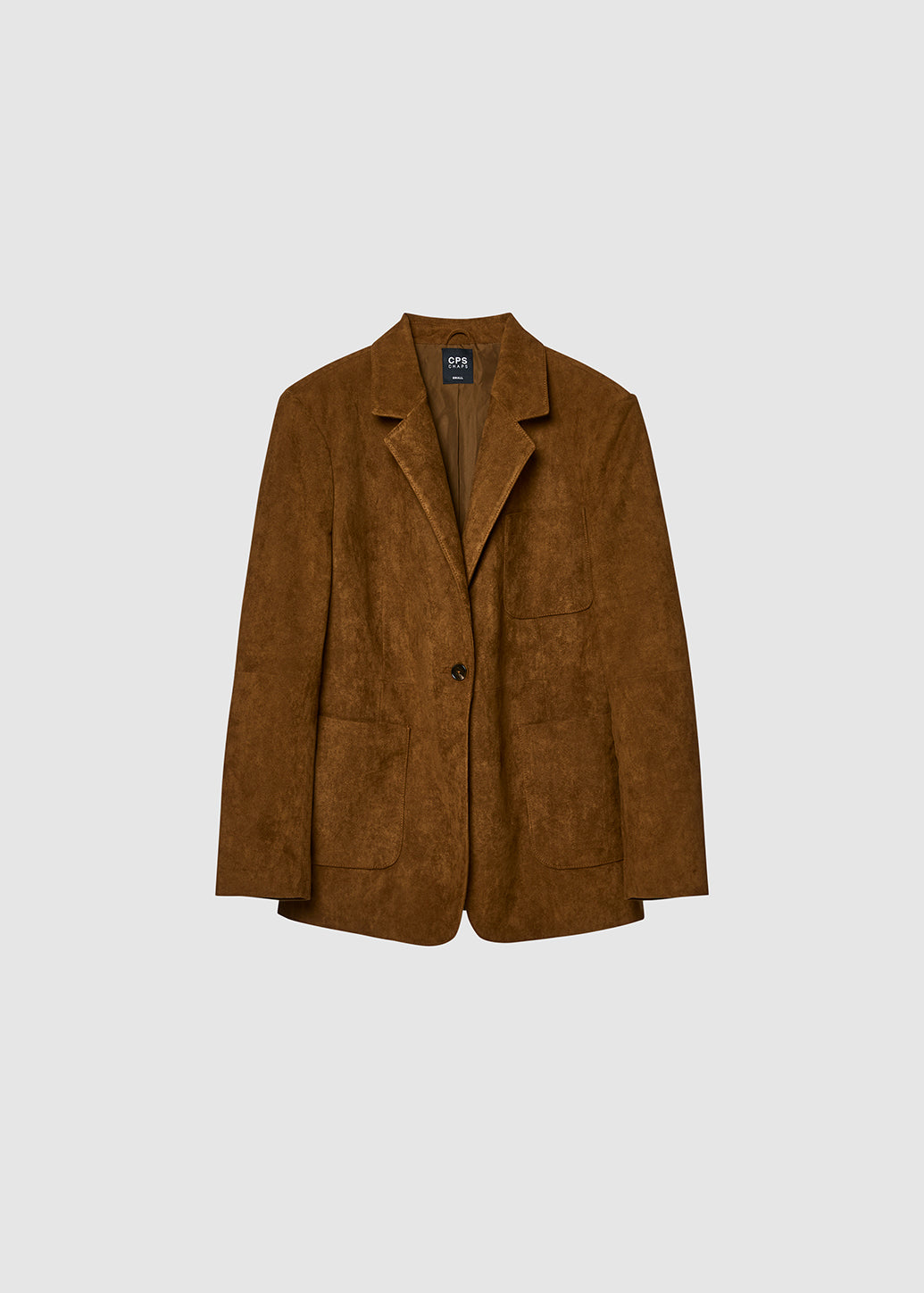 Oversized suede blazer in a classic and refined design, detailed with multiple front pockets. Crafted from soft suede for a perfect winter touch, it embodies timeless minimal charm. Style it with denim or tailored slacks to add chic, effortless sophistication to any occasion.