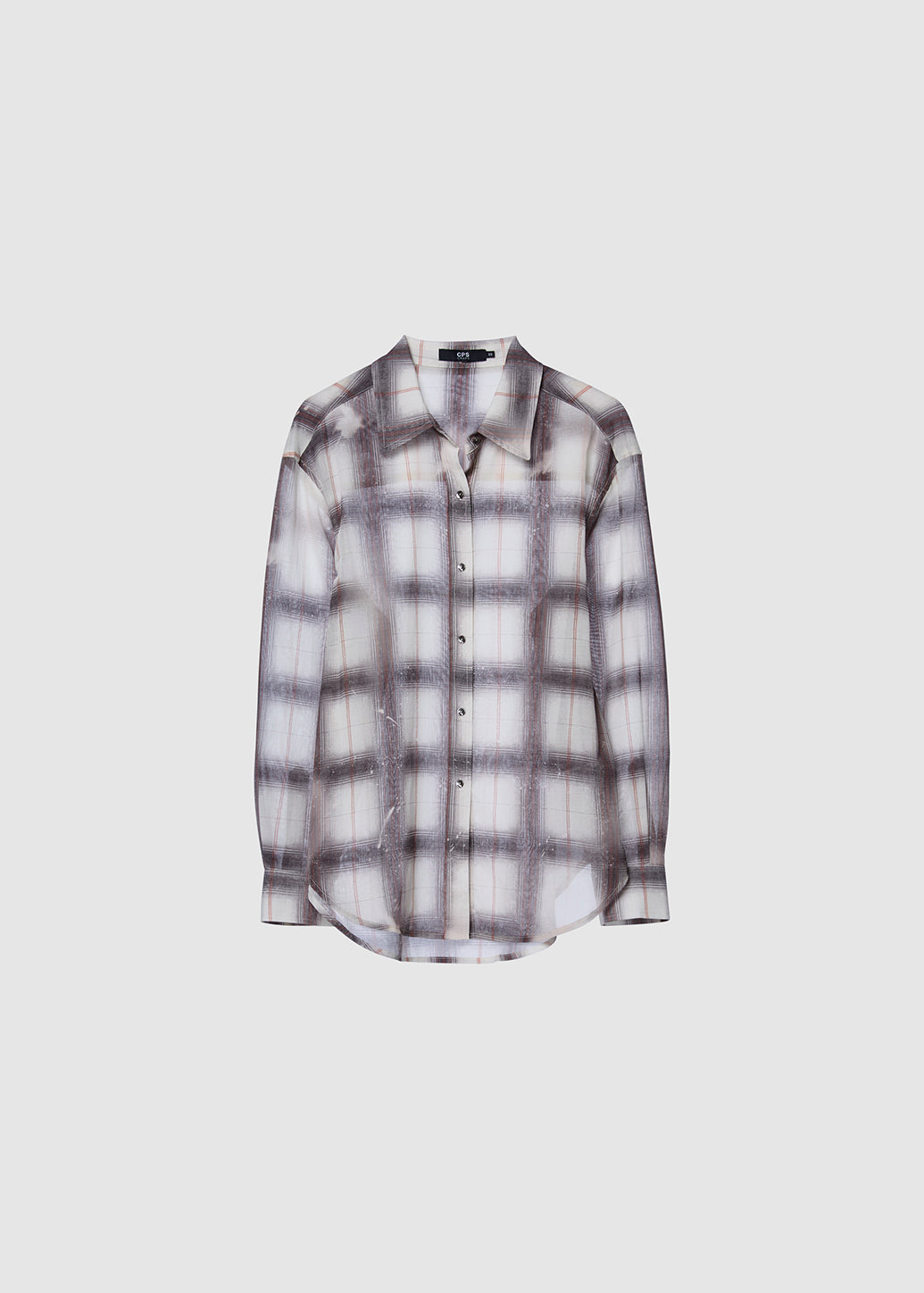 Long-sleeve sheer checkered shirt in a relaxed fit, reimagining classic fashion with a modern twist. Its lightweight and airy texture makes it perfect for layering to create a standout look. Wear it solo or style it over a plain tee to add a chic, edgy touch of CPS CHAPS style.