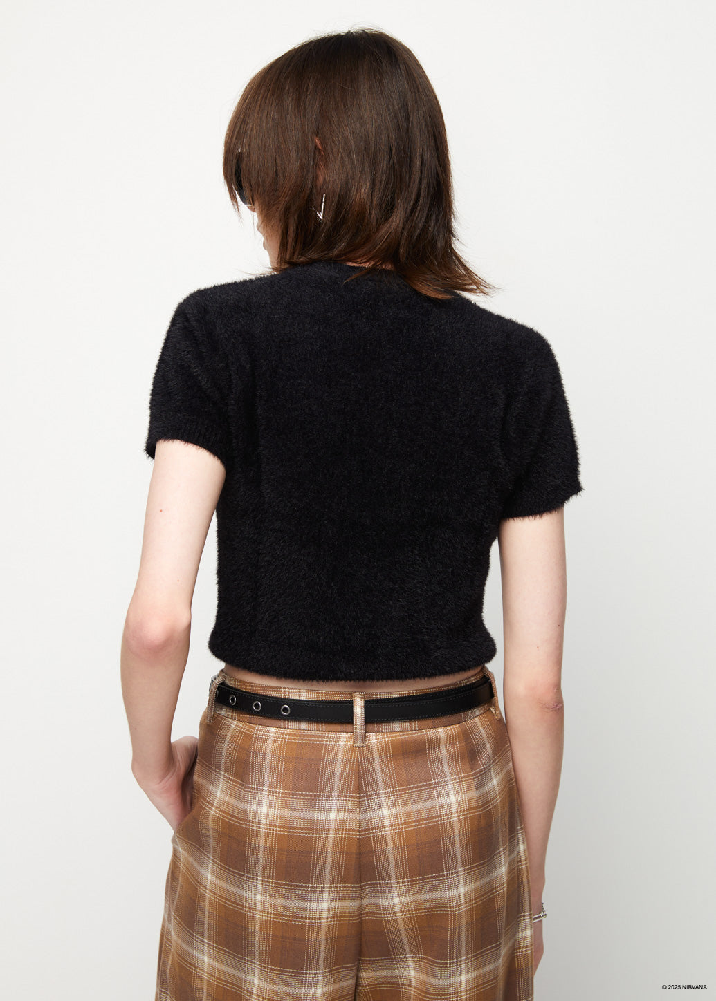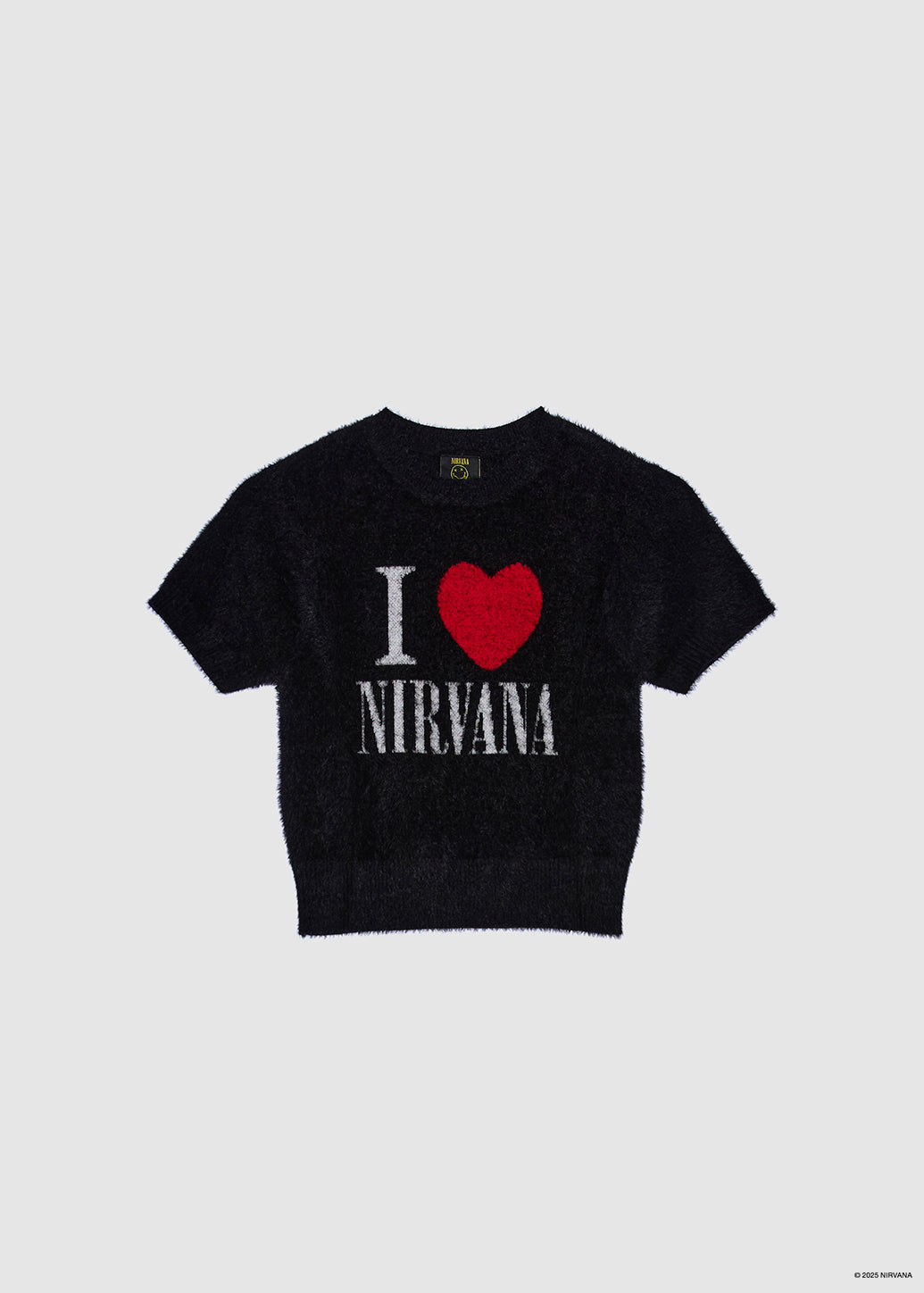 Create a cool and timeless look with our latest CPS X Nirvana collaboration. This slim-fit, round-neck fuzzy t-shirt features a bold 'I ♥ Nirvana' graphic on front, perfectly blending rock music and casual fashion. This tee is easy to wear on its own or layered under a shirt or jacket, creating a cool and raw winter look that perfectly fuses fashion and music.