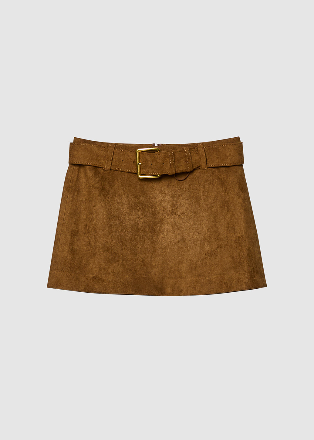 Spice up your everyday style with this suede mini skort, designed in a timeless above-the-knee length. It comes with a matching adjustable belt for a polished touch, while subtle details complete the look with ease. Pair it with a long-sleeve top and layer under a jacket for a warm, modern vibe in earthy brown tones—perfectly in step with 2025 fashion trends.