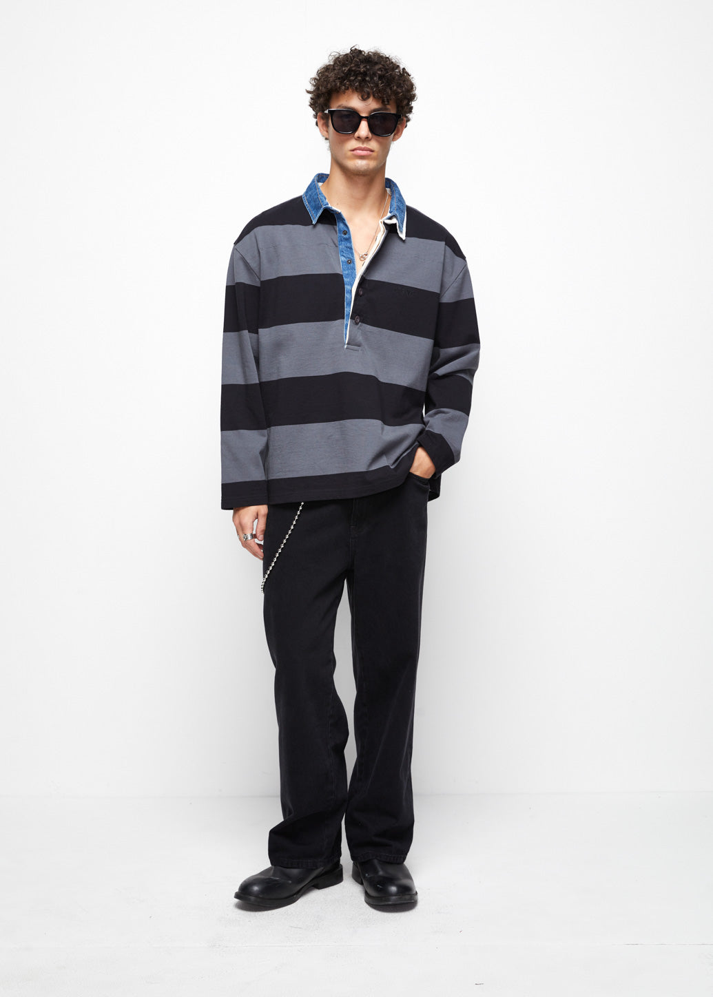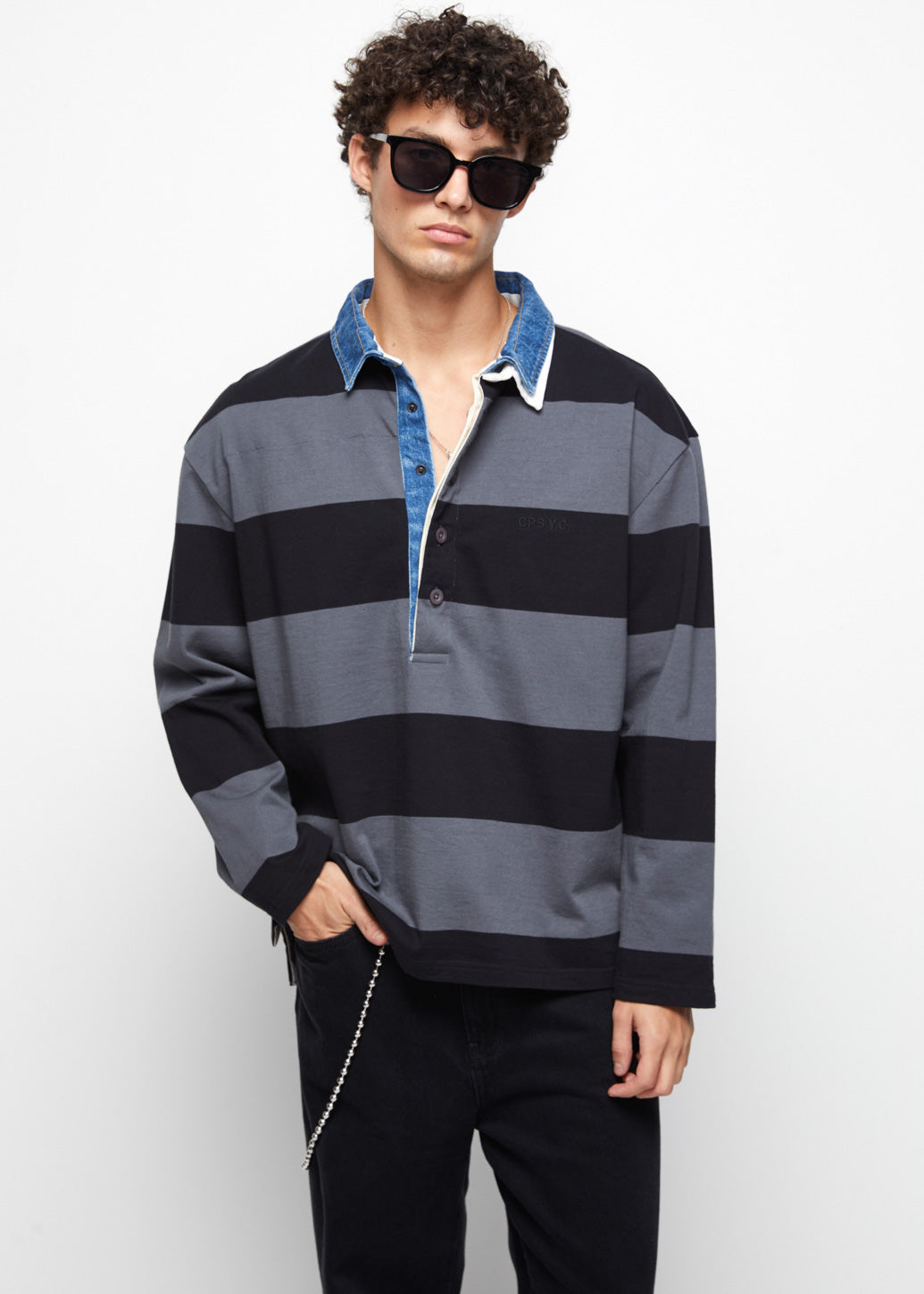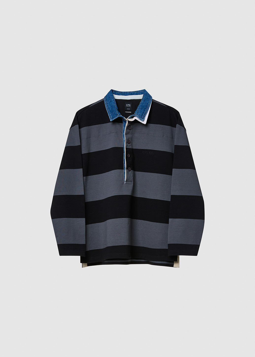 Rugby polo shirt featuring bold classic stripes for a vintage sporty vibe. Designed in a relaxed fit and long sleeves for comfort and effortless style. Pair it with denim to nail casual and standout streetwear looks.